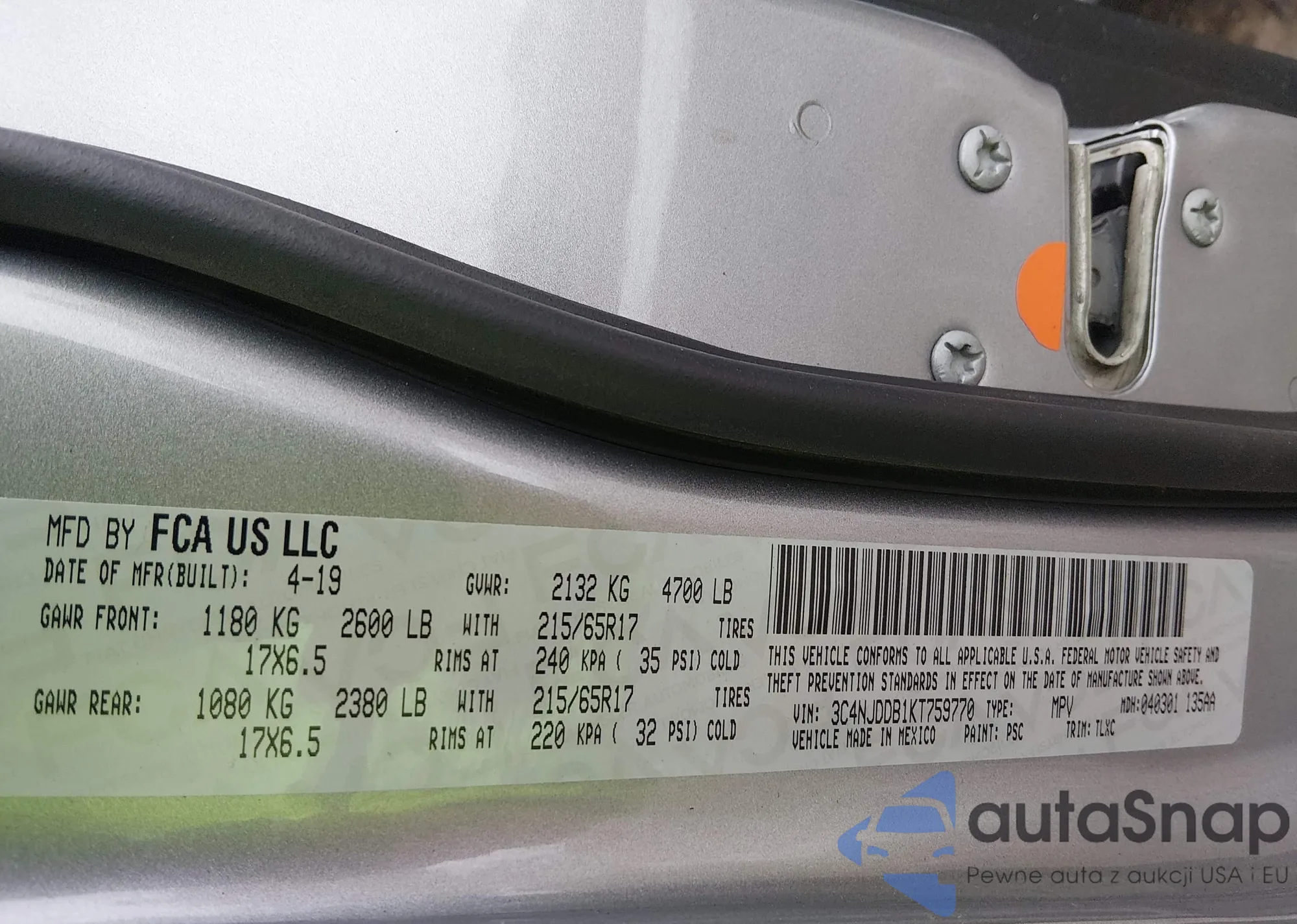 • VIN 3C4NJDDB1KT759770
