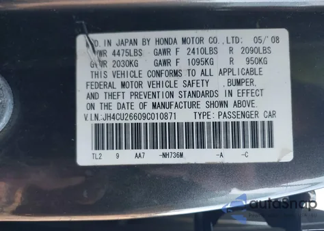 LOT: 44046248 VIN: JH4CU26609C010871