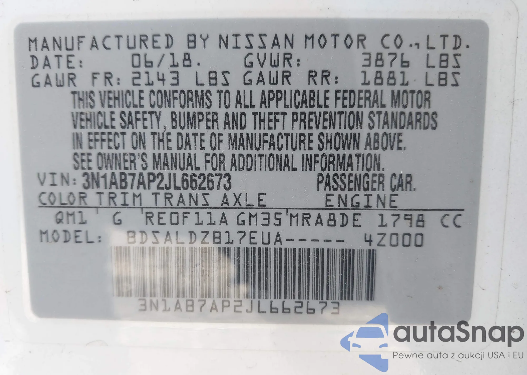 • VIN 3N1AB7AP2JL662673
