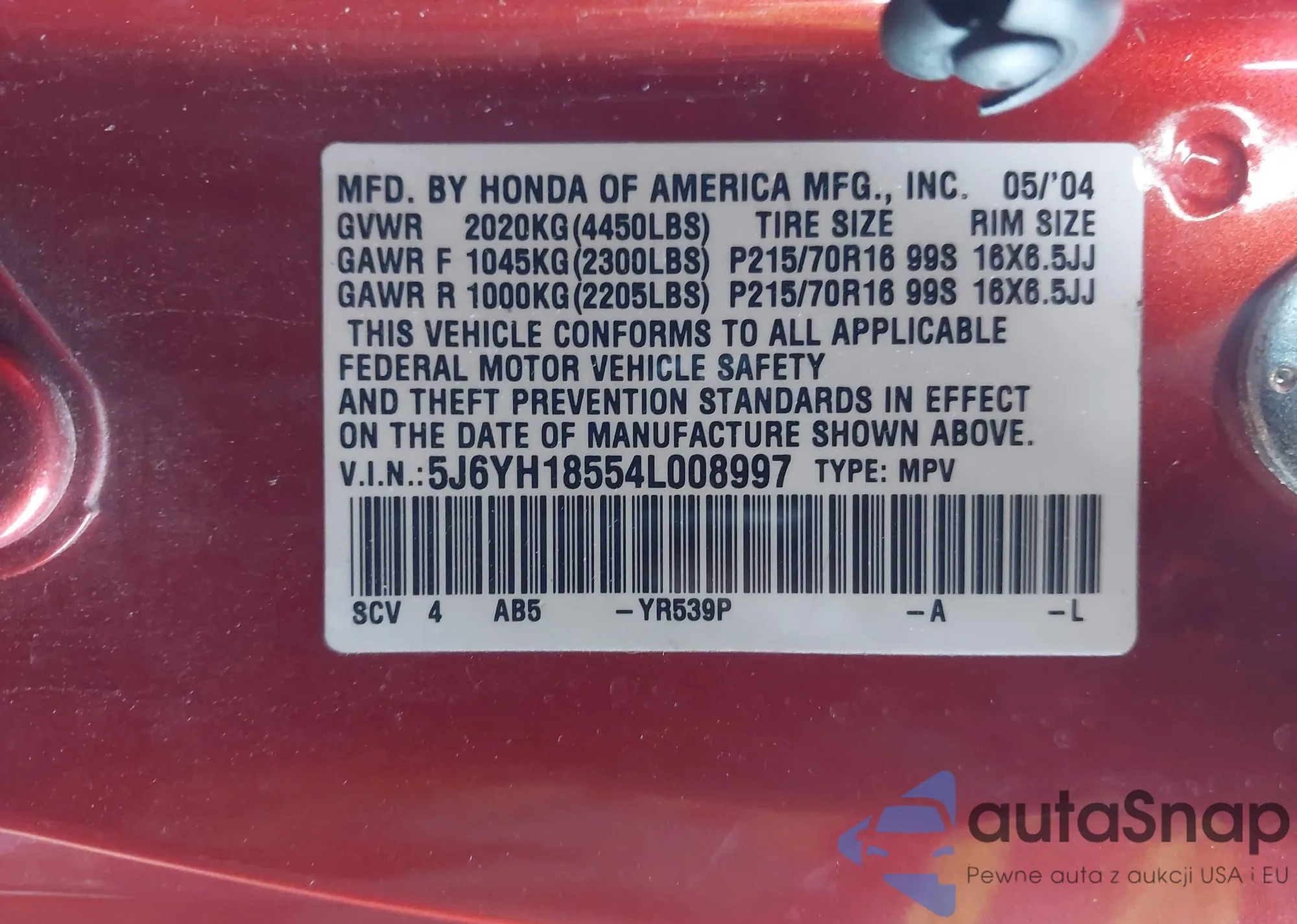 LOT: 44080382 VIN: 2HGFG11857H531346