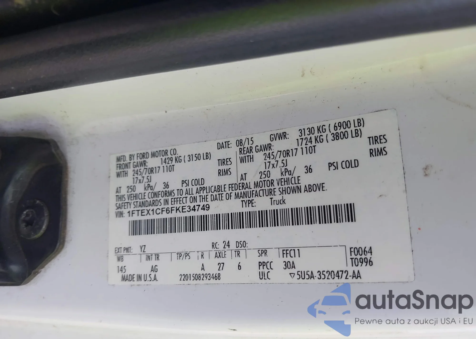 LOT: 43754399 VIN: 1FTEX1CF6FKE34749