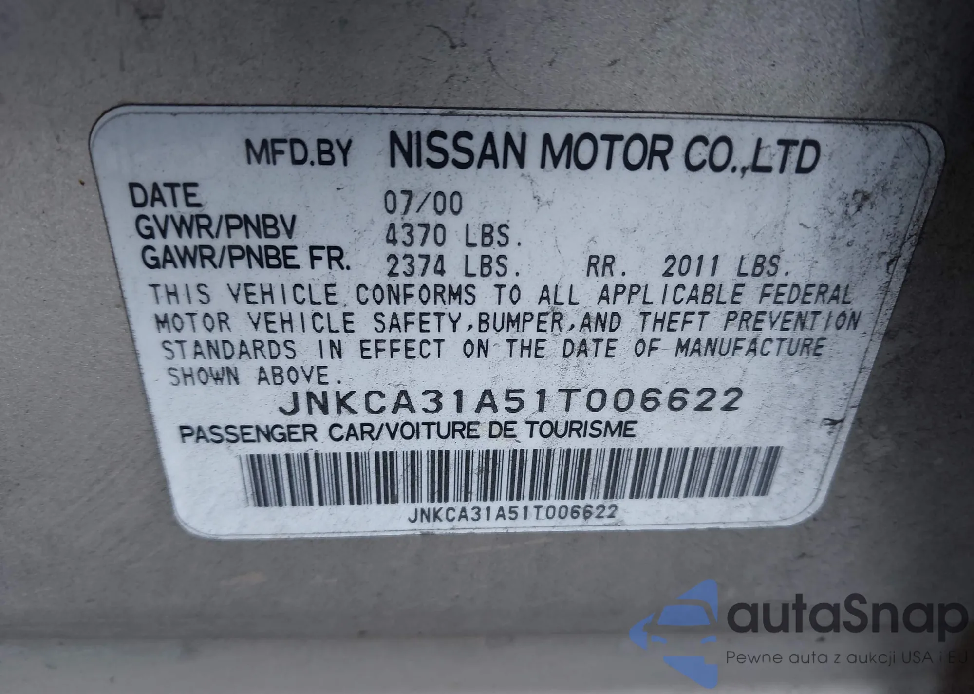 • VIN JNKCA31A51T006622