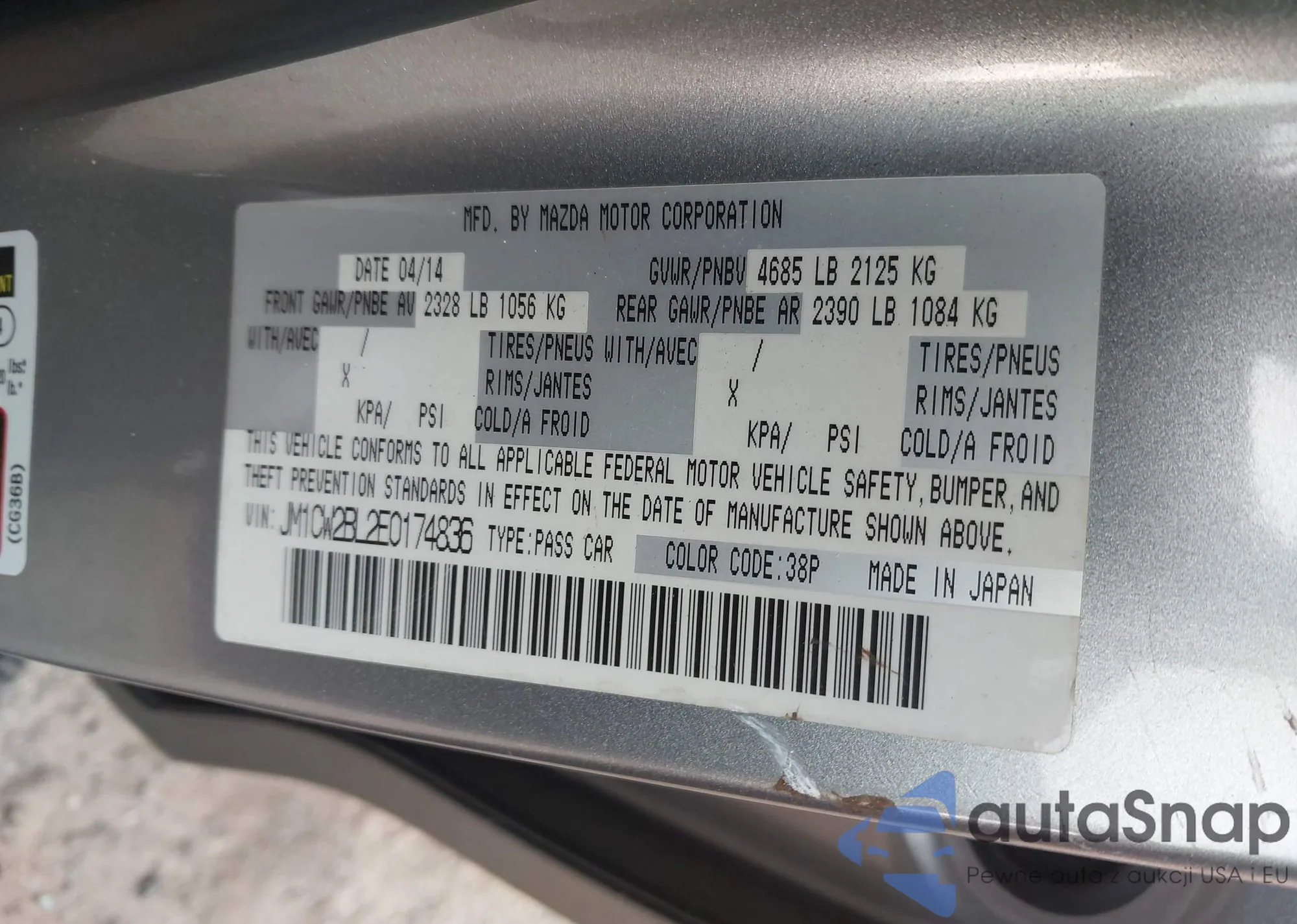 • VIN 5YFB4MDE0PP040122