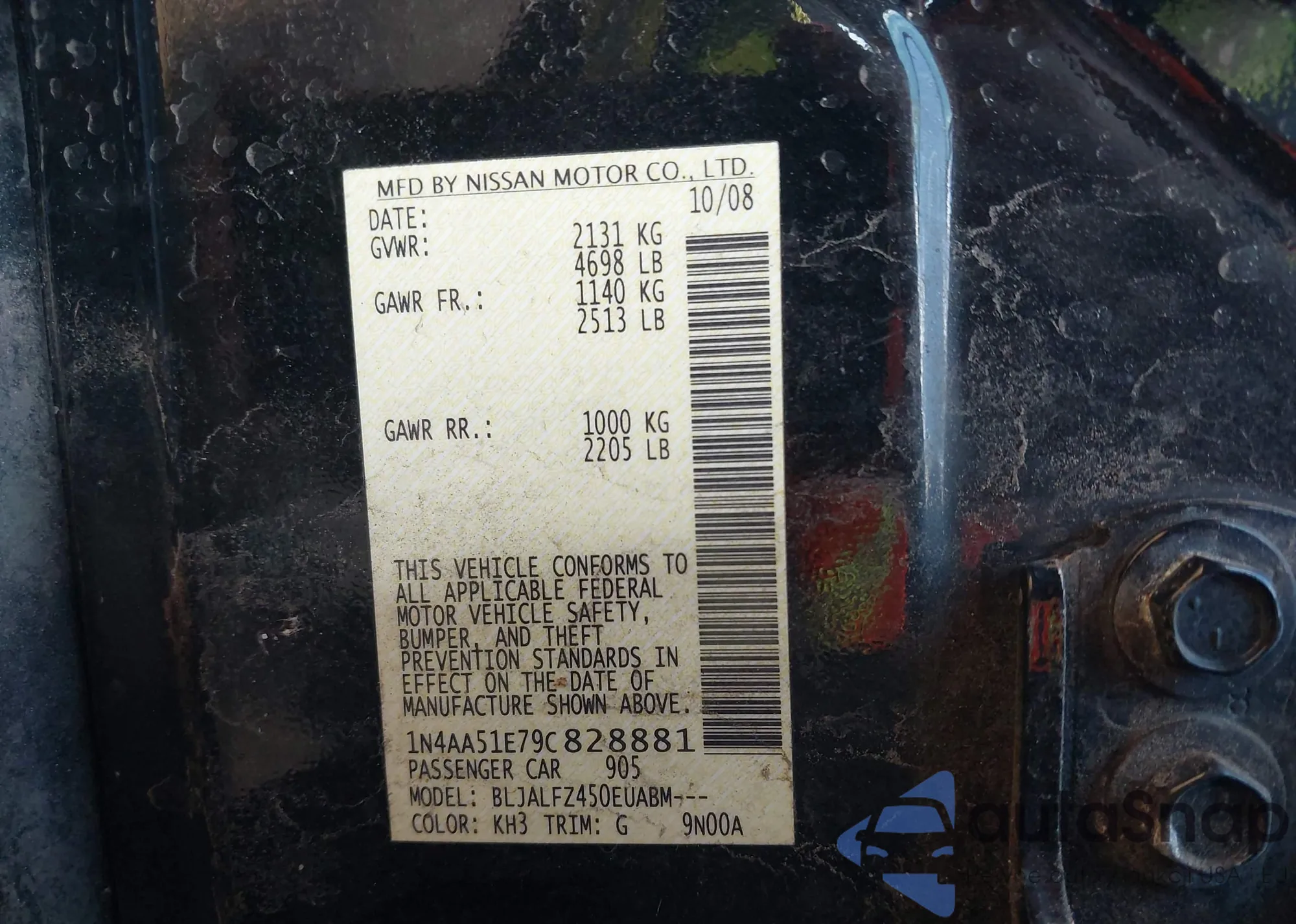 LOT: 44065758 VIN: 1N4AA51E79C828881