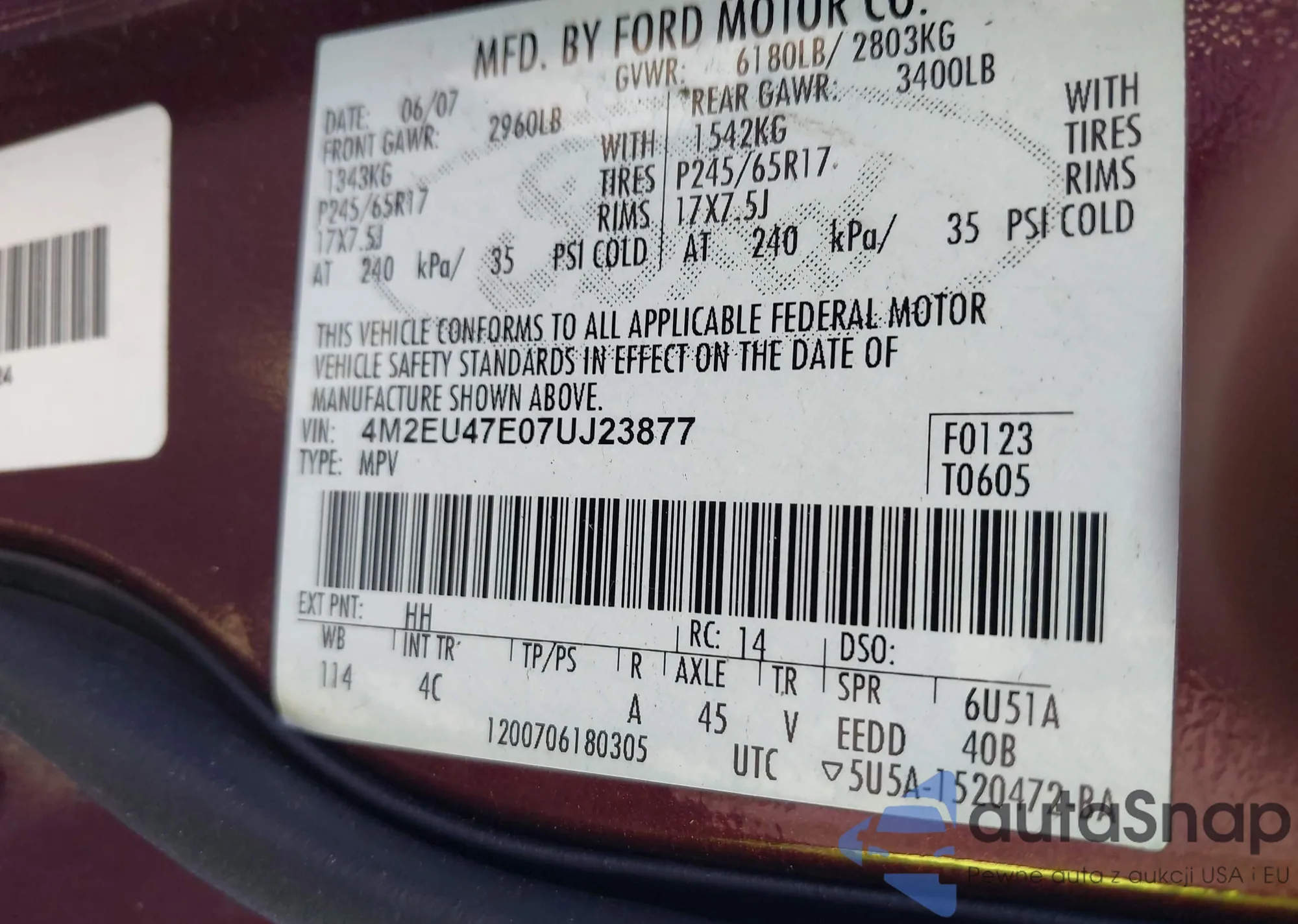 LOT: 44050182 VIN: 5N1AA08A16N739447