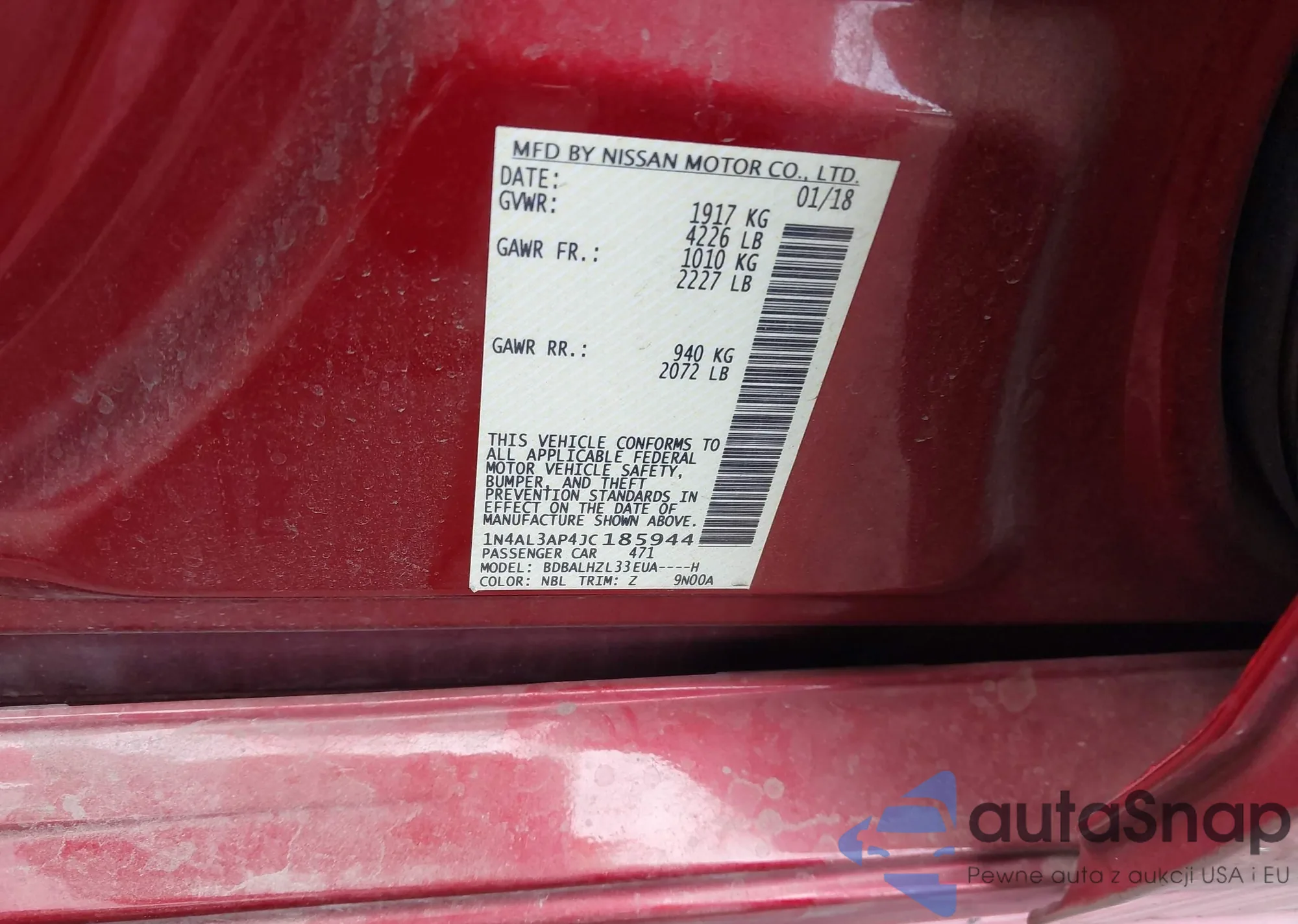 LOT: 43809135 VIN: 1N4AL3AP4JC185944