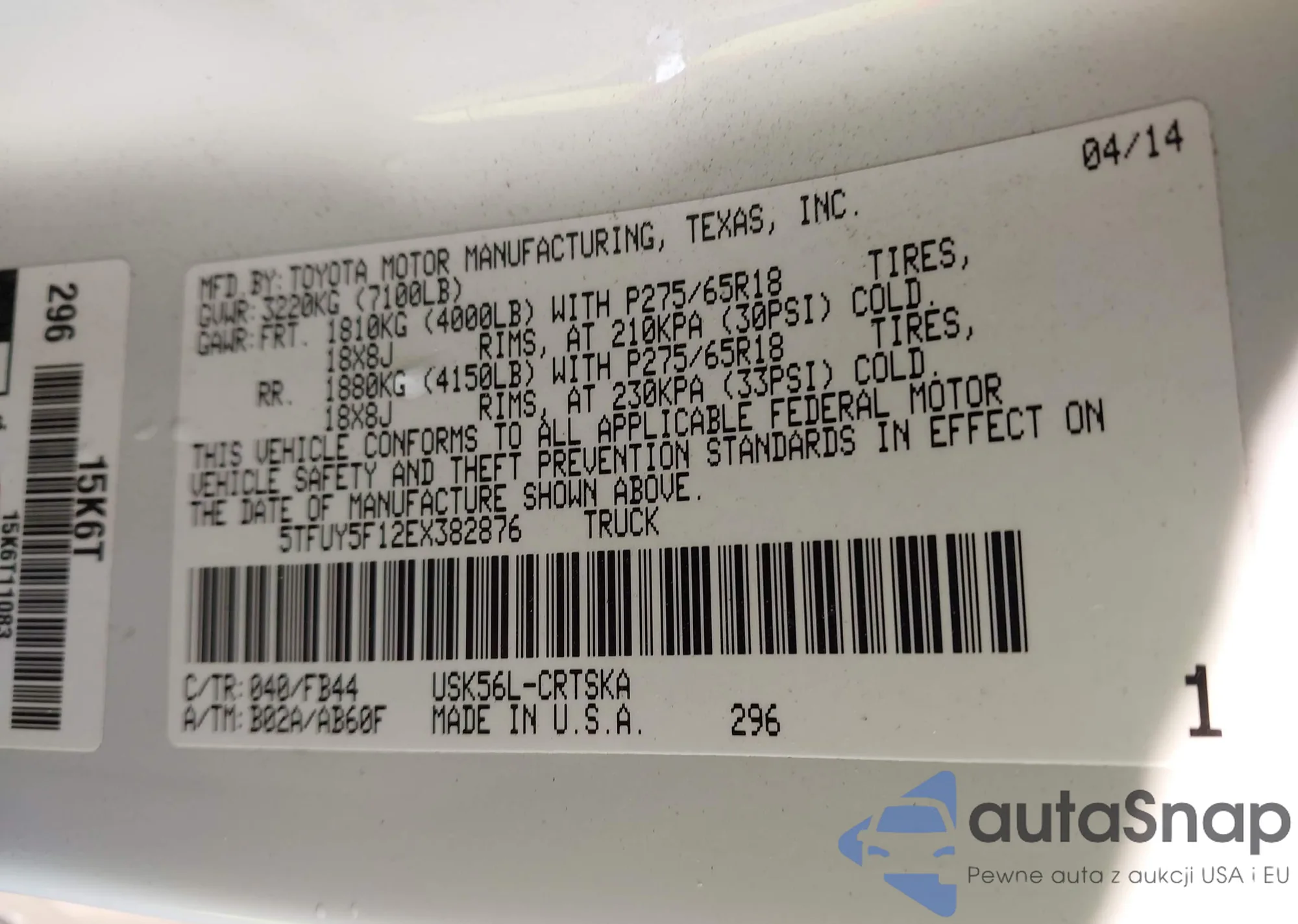 LOT: 43814130 VIN: 5TFUY5F12EX382876