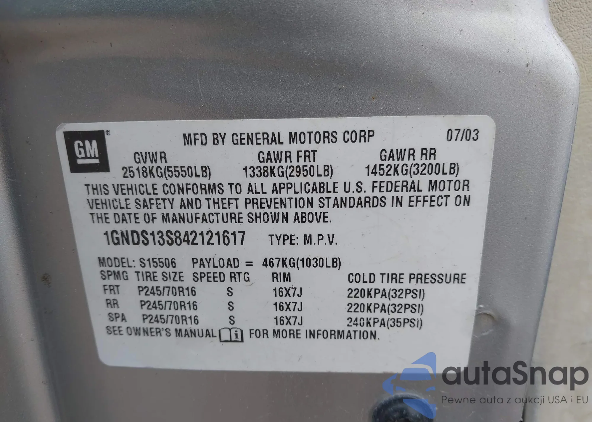 • VIN KL7CJLSB2GB673927