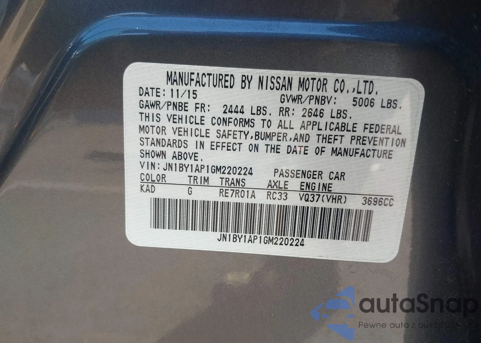 LOT: 44027448 VIN: JN1BY1AP1GM220224