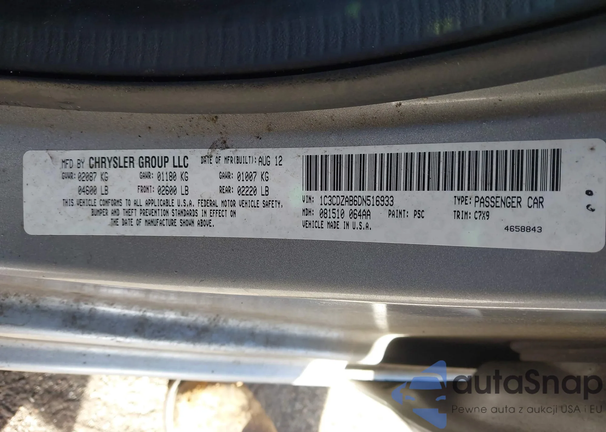 LOT: 44034558 VIN: 1C3CDZAB6DN516933