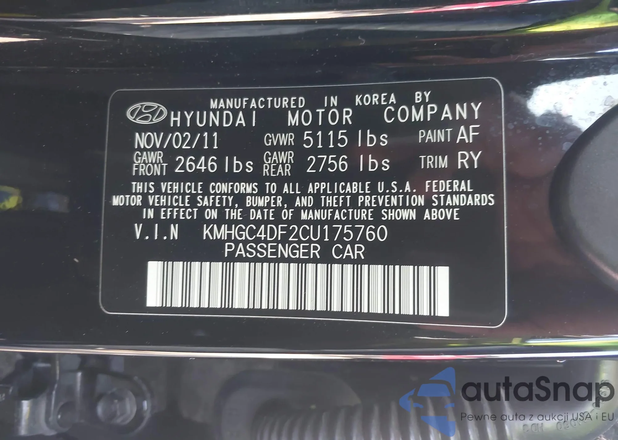 • VIN KMHGC4DF2CU175760