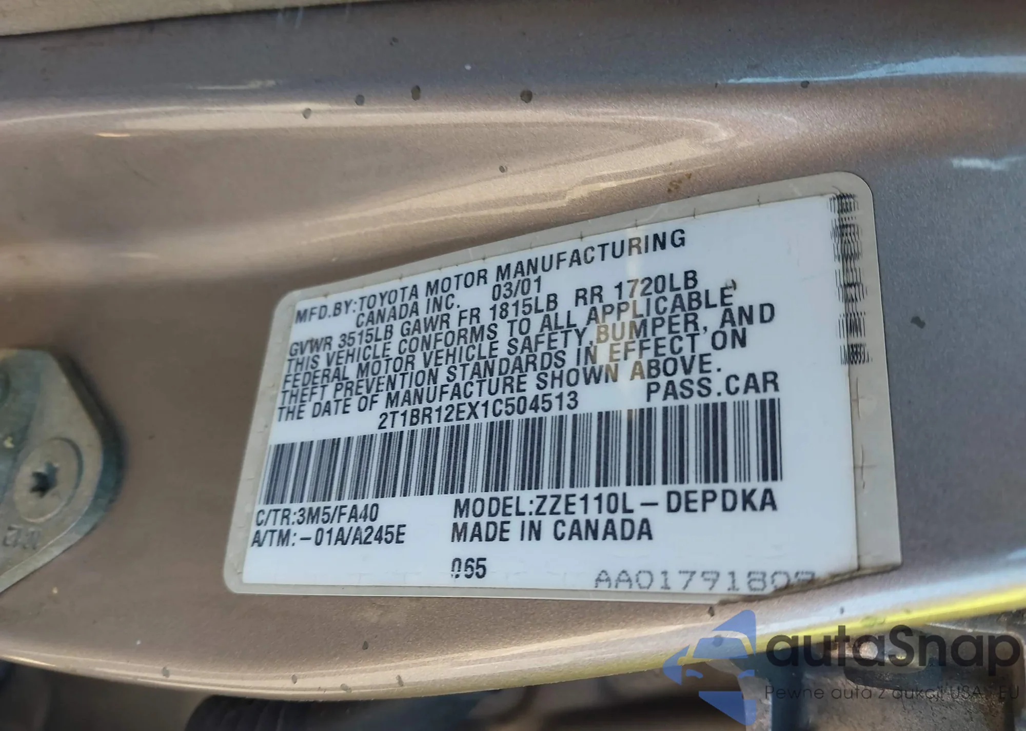 • VIN 2T1BR12EX1C504513