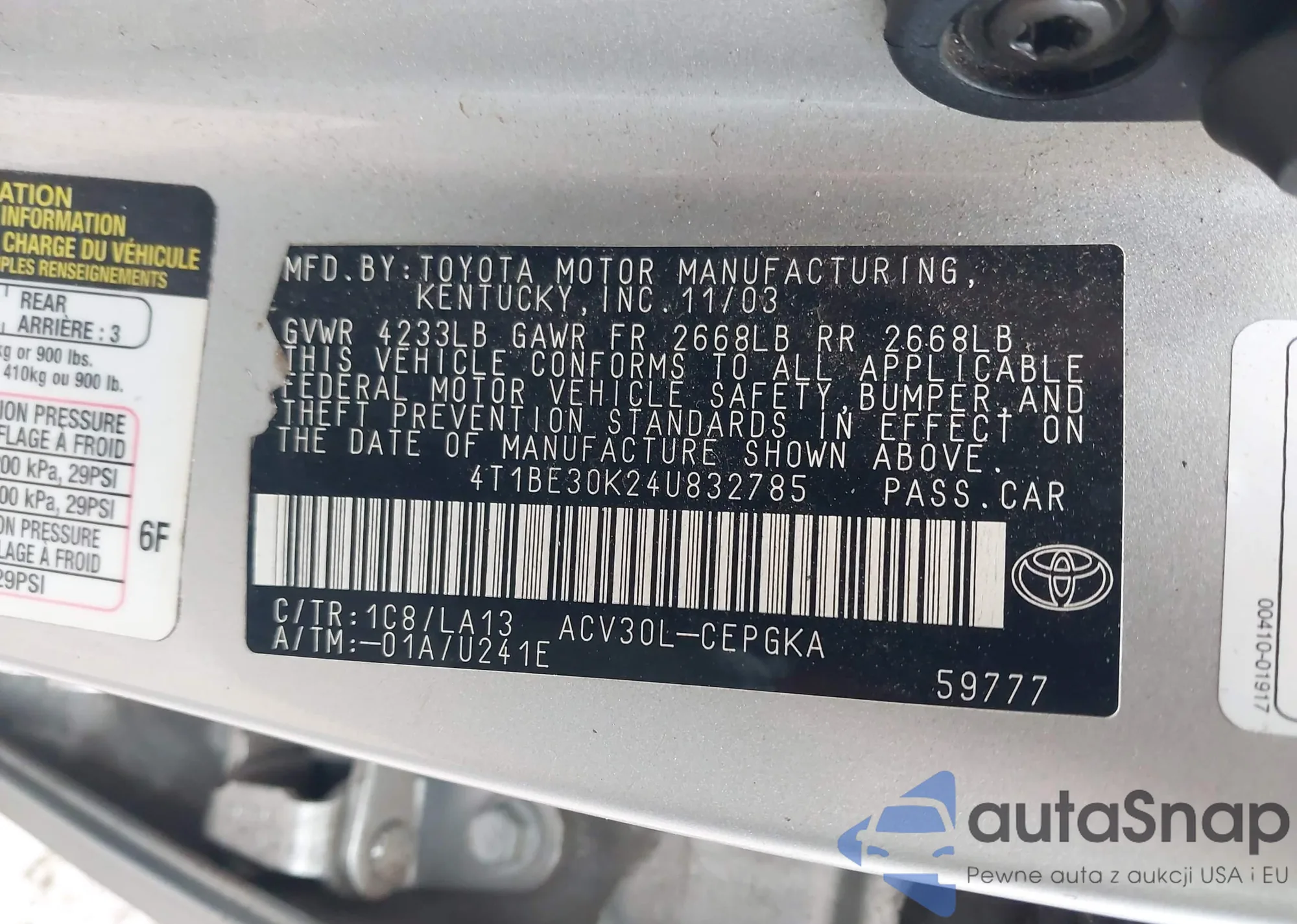 LOT: 44068068 VIN: JT8BF28G7W5016579