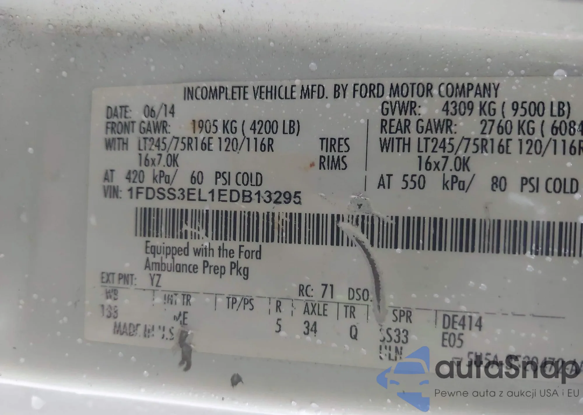 • VIN 1FDSS3EL1EDB13295