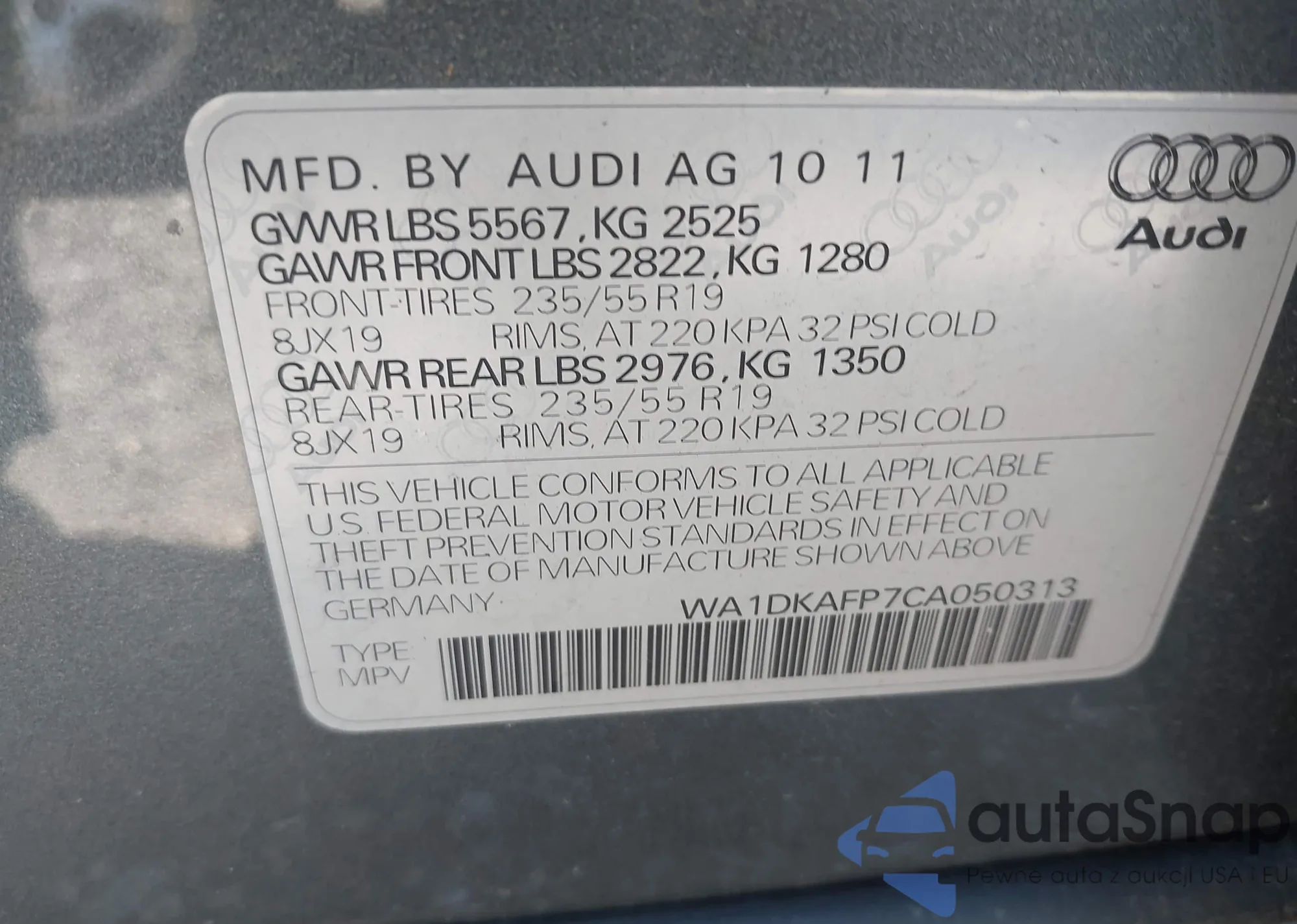 LOT: 43703505 VIN: WA1DKAFP7CA050313