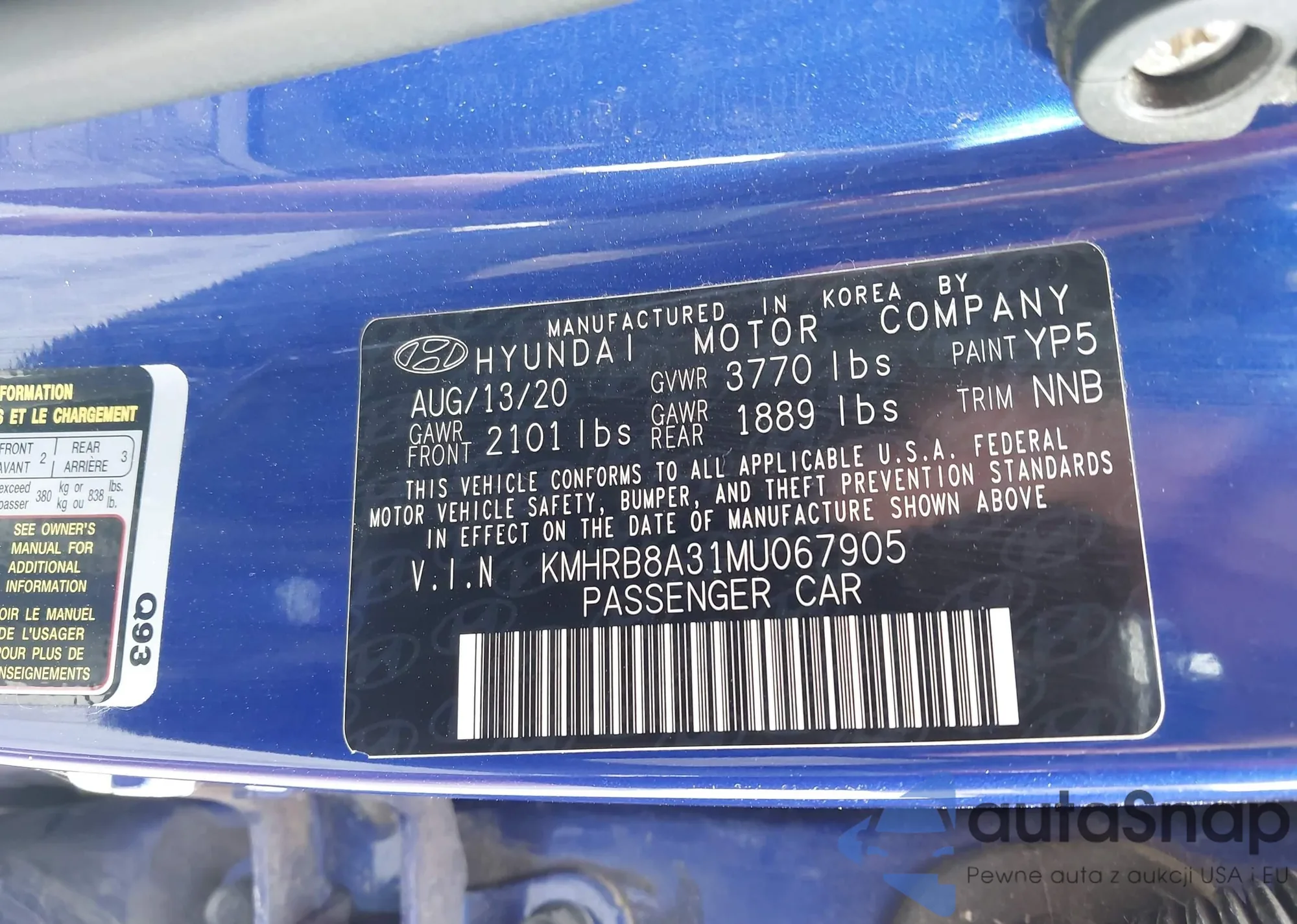 • VIN KMHRB8A31MU067905