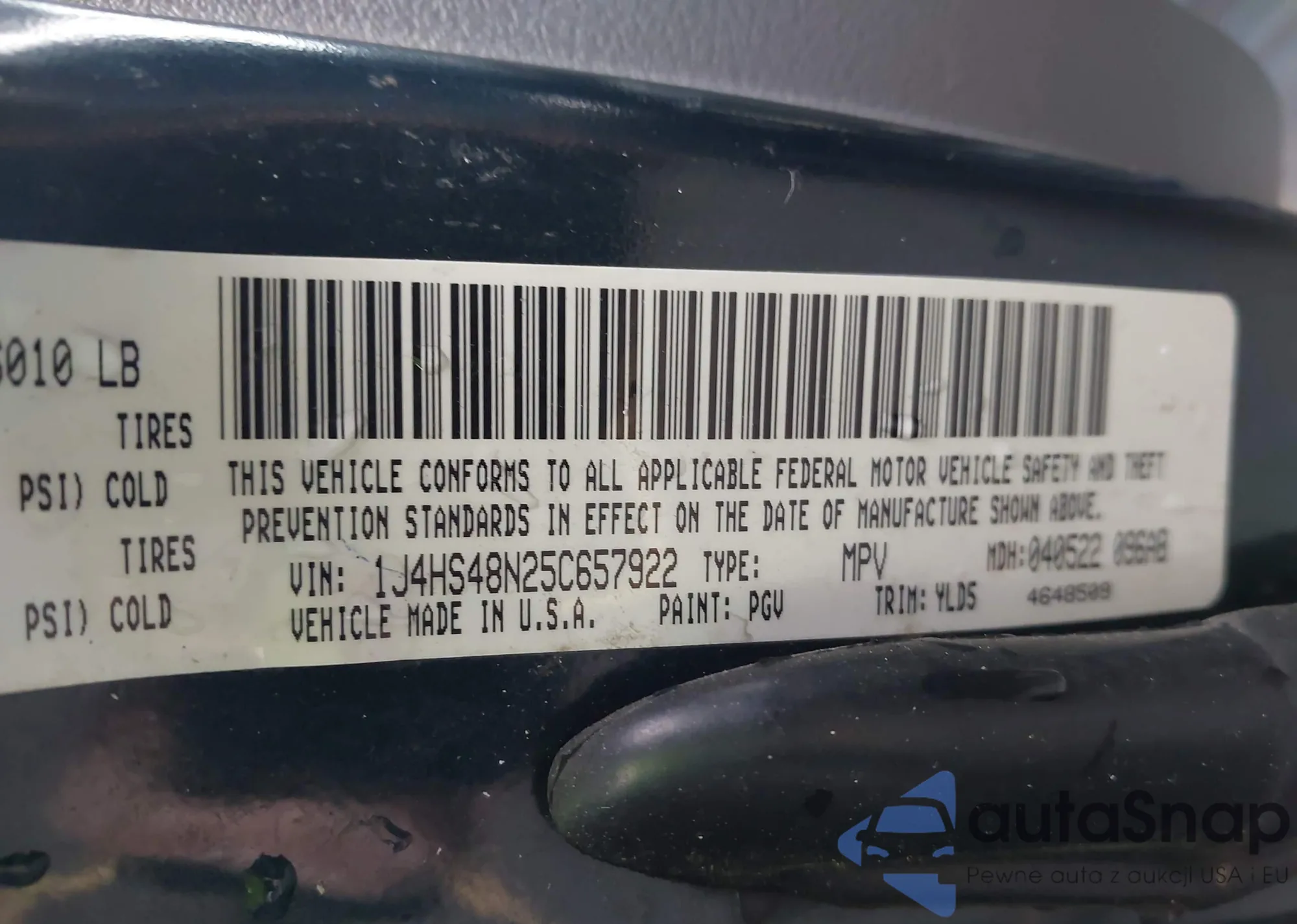 • VIN 1J4HS48N25C657922