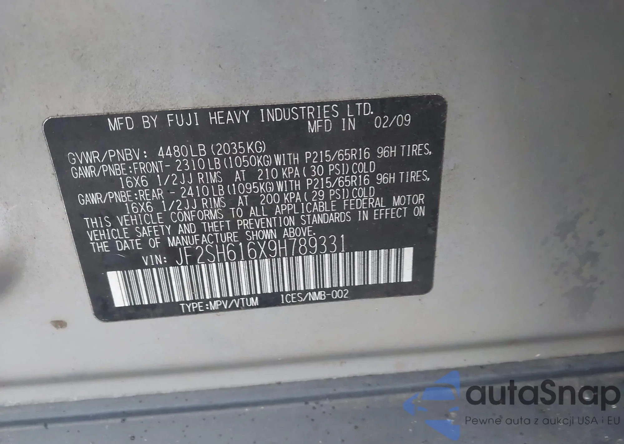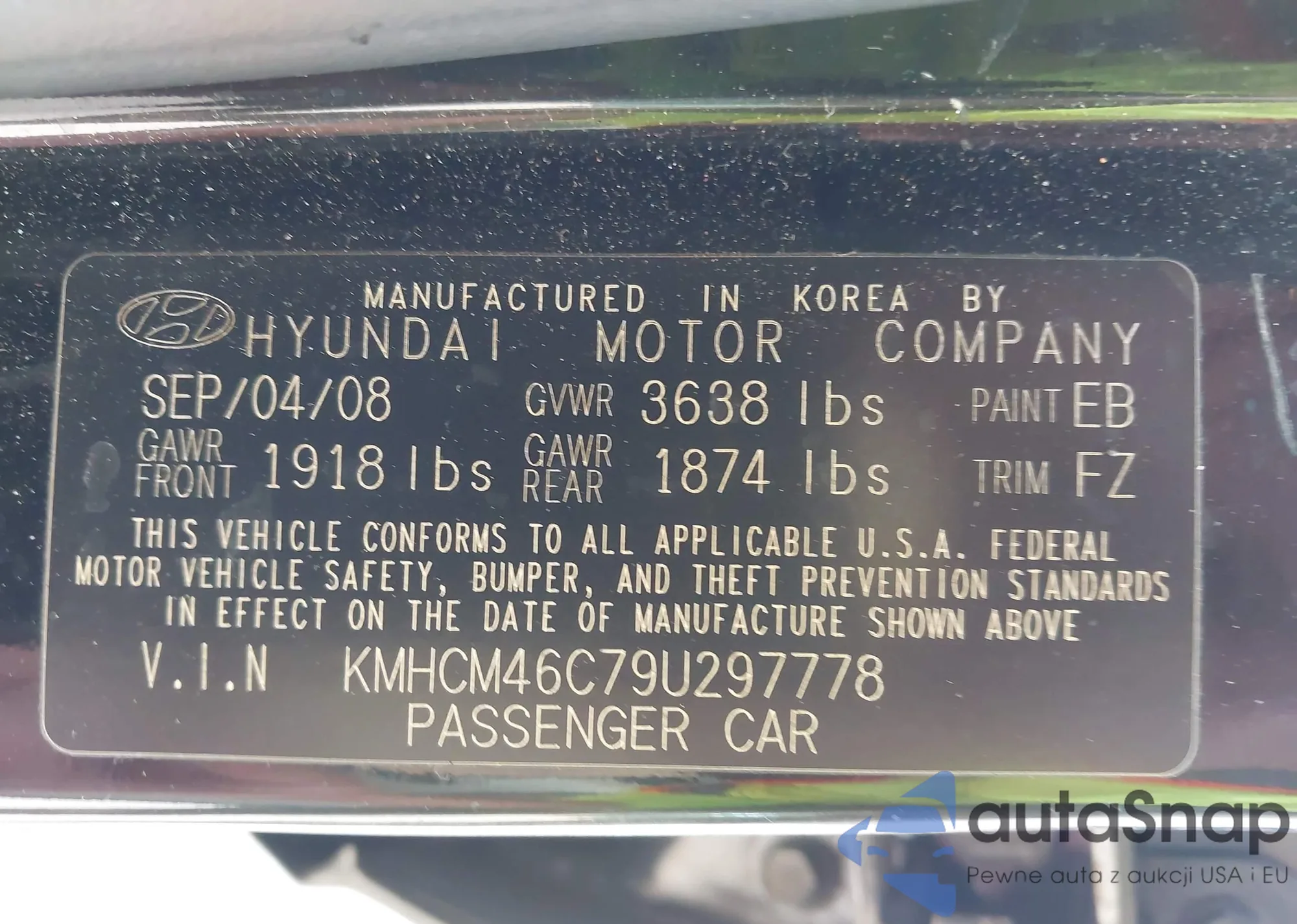 LOT: 43665296 VIN: KMHCM46C79U297778