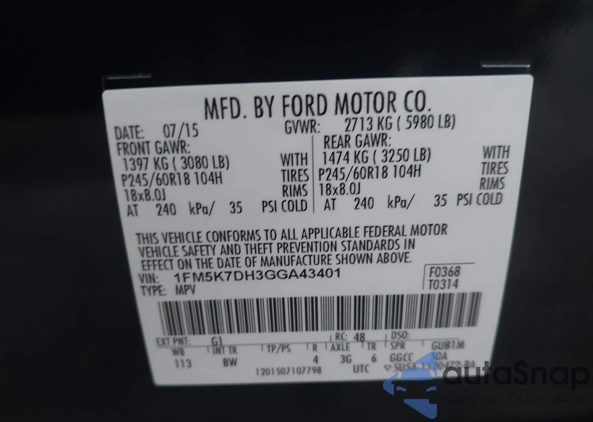 • VIN 1FM5K7DH3GGA43401