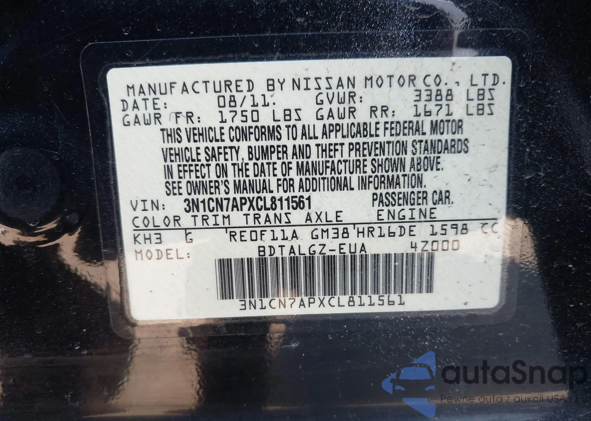 • VIN 3N1CN7APXCL811561