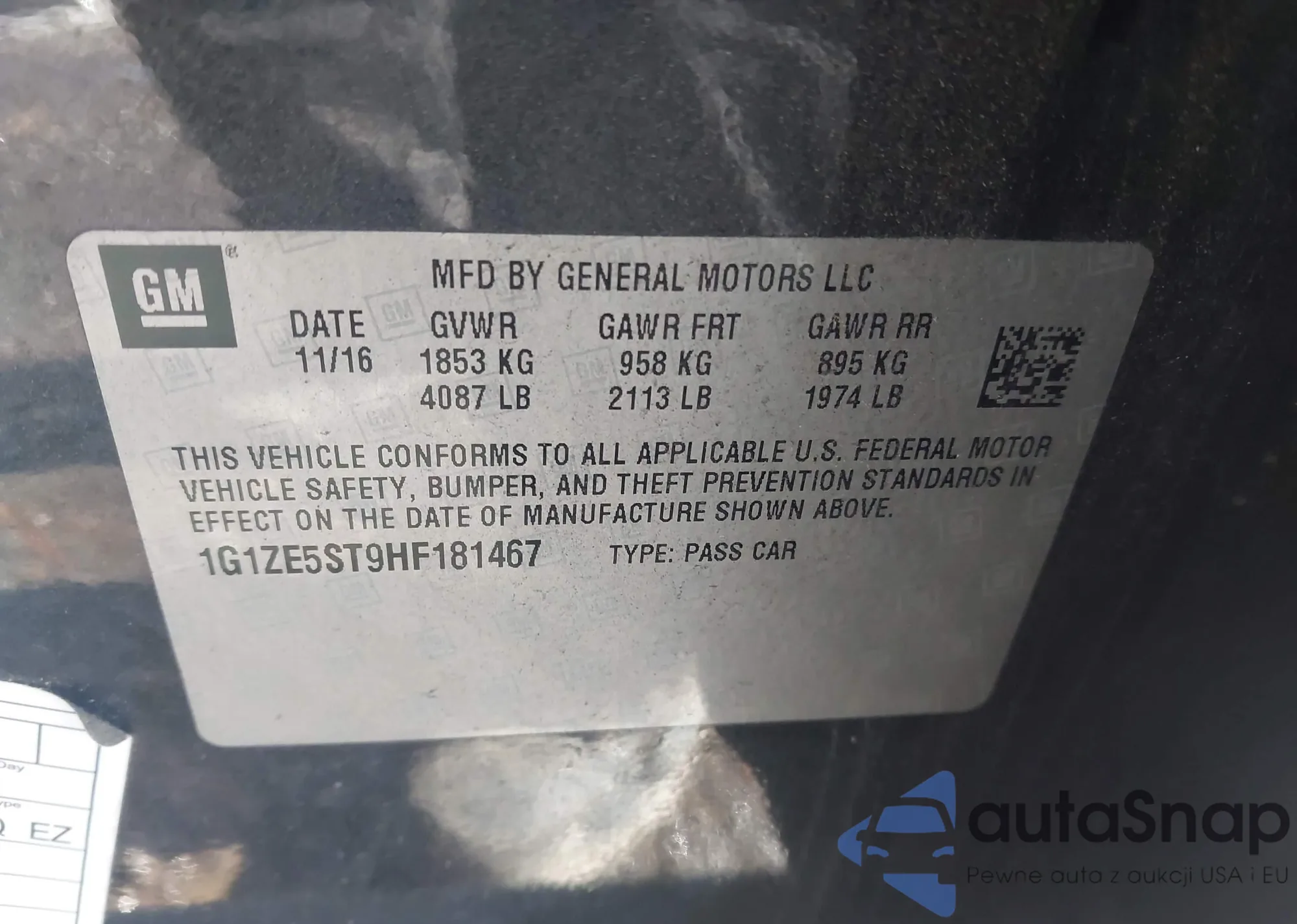• VIN 1G1ZE5ST9HF181467