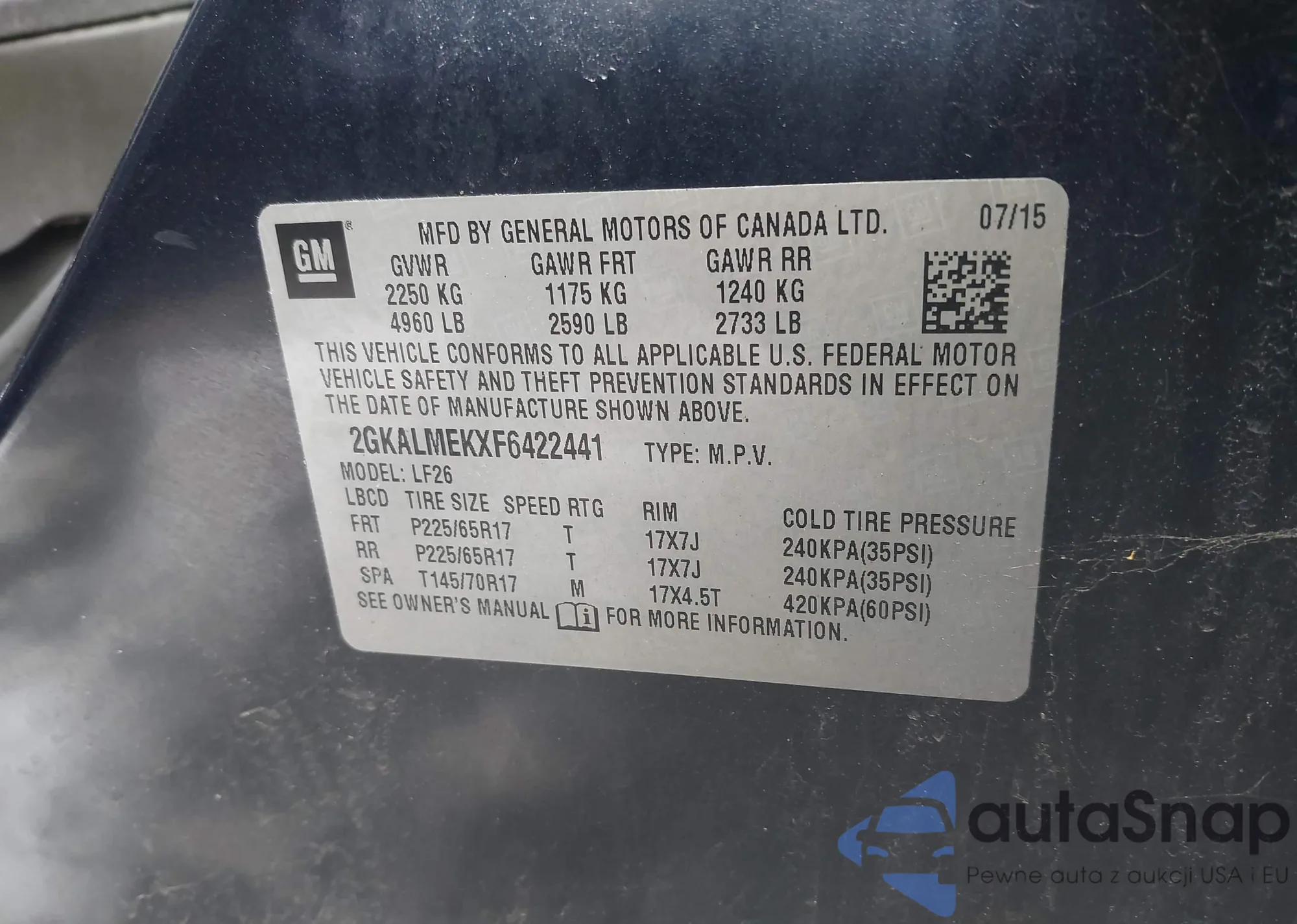 • VIN 2GKALMEKXF6422441