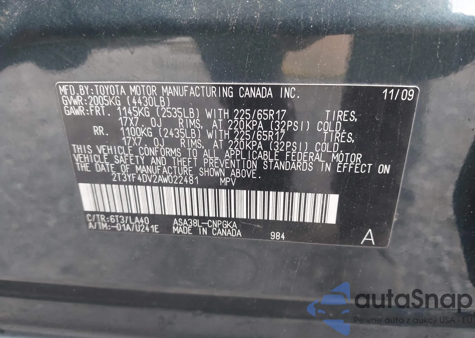 • VIN 2T3YF4DV2AW022481