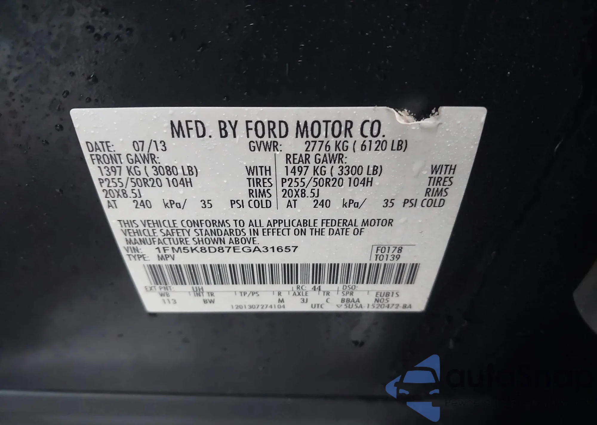 LOT: 44005333 VIN: 1FM5K8D87EGA31657
