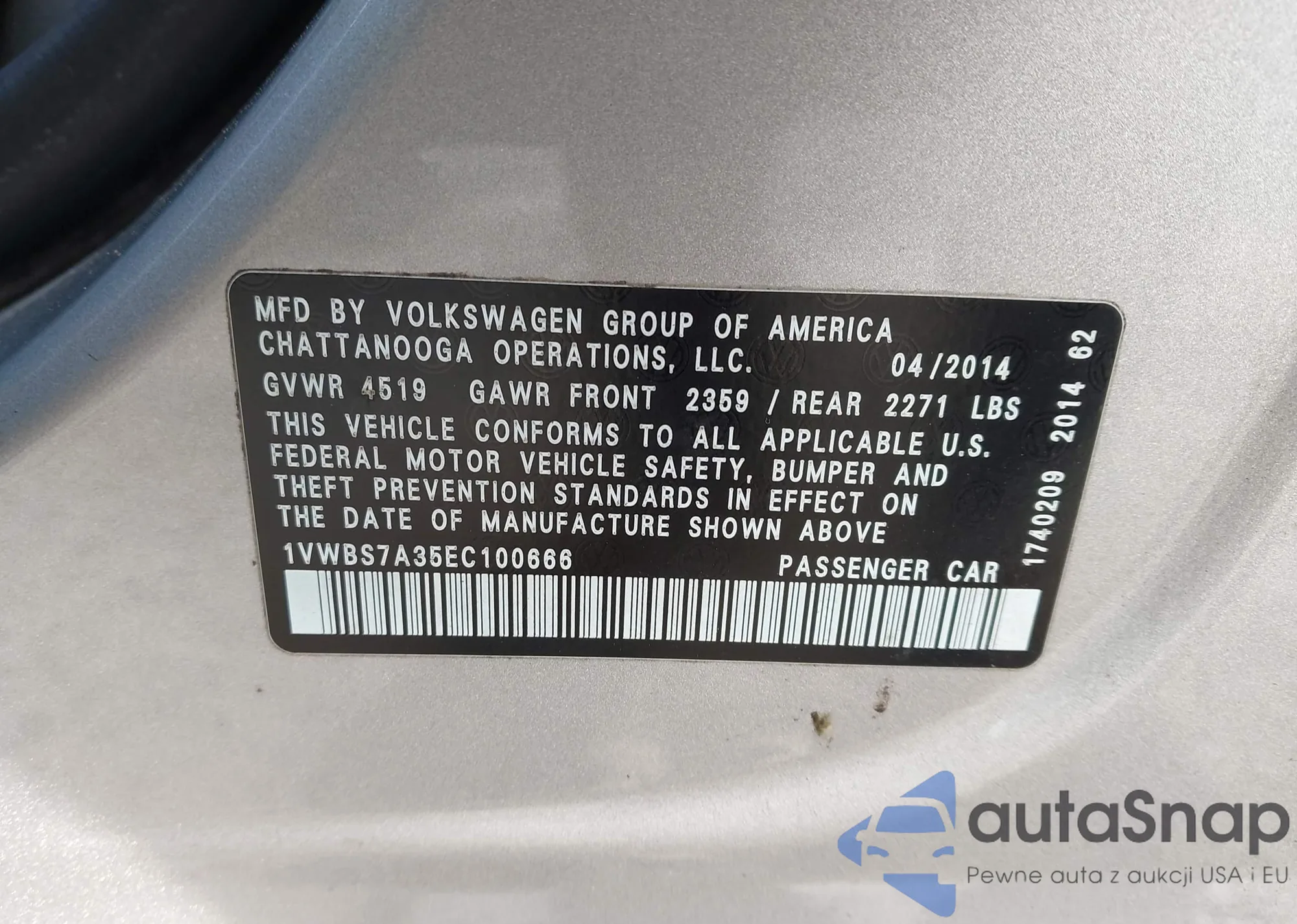 LOT: 44016002 VIN: 1VWBS7A35EC100666