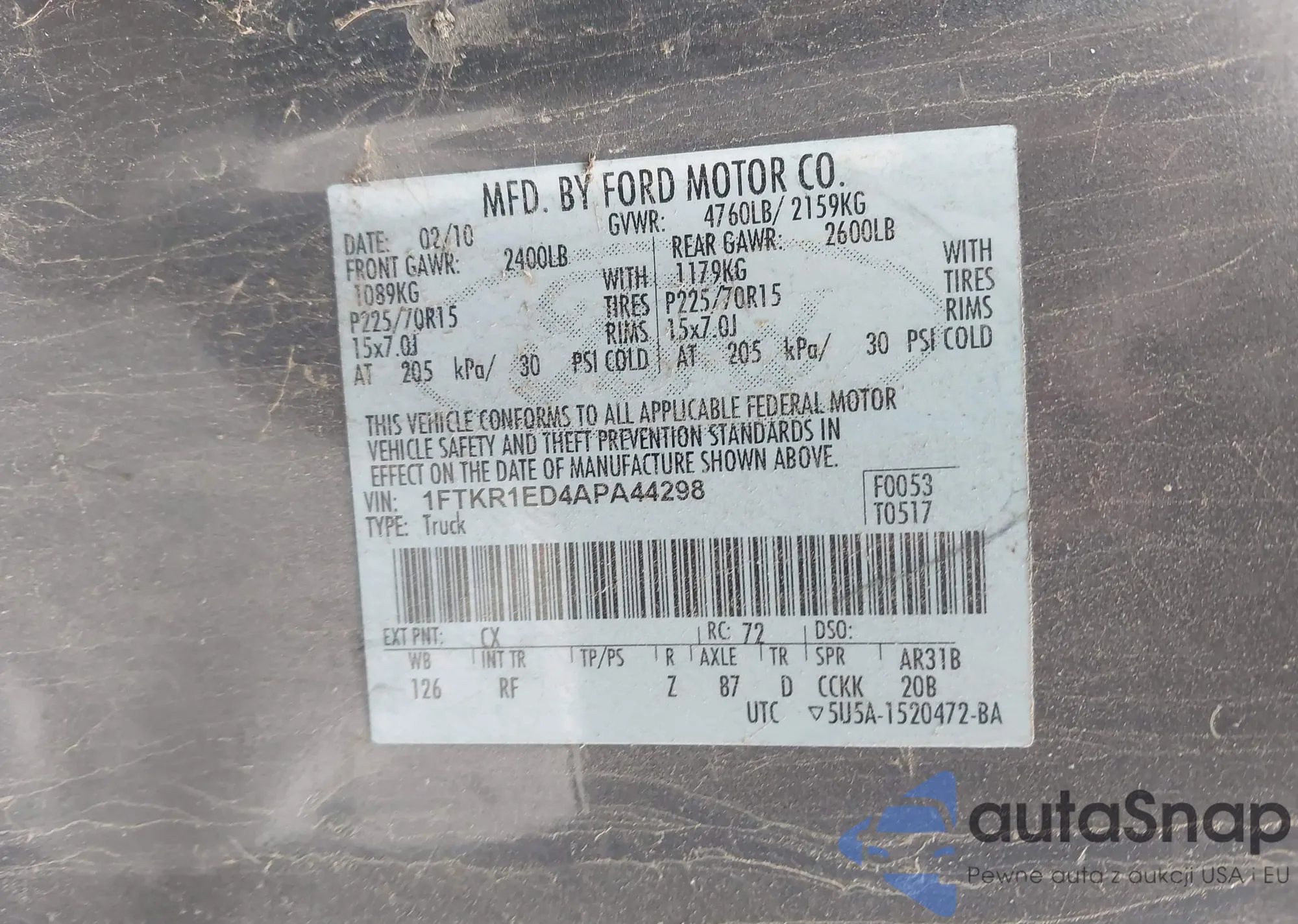 • VIN 1FTKR1ED4APA44298
