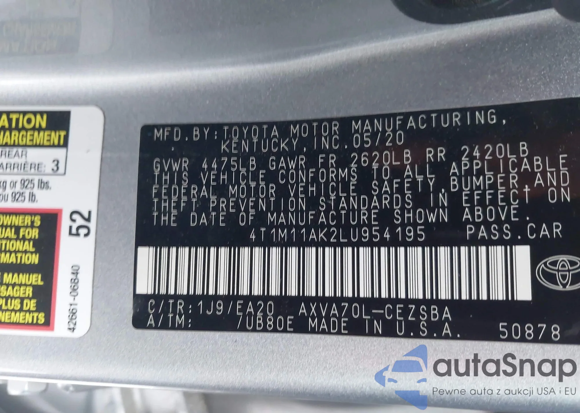 • VIN 4T1M11AK2LU954195