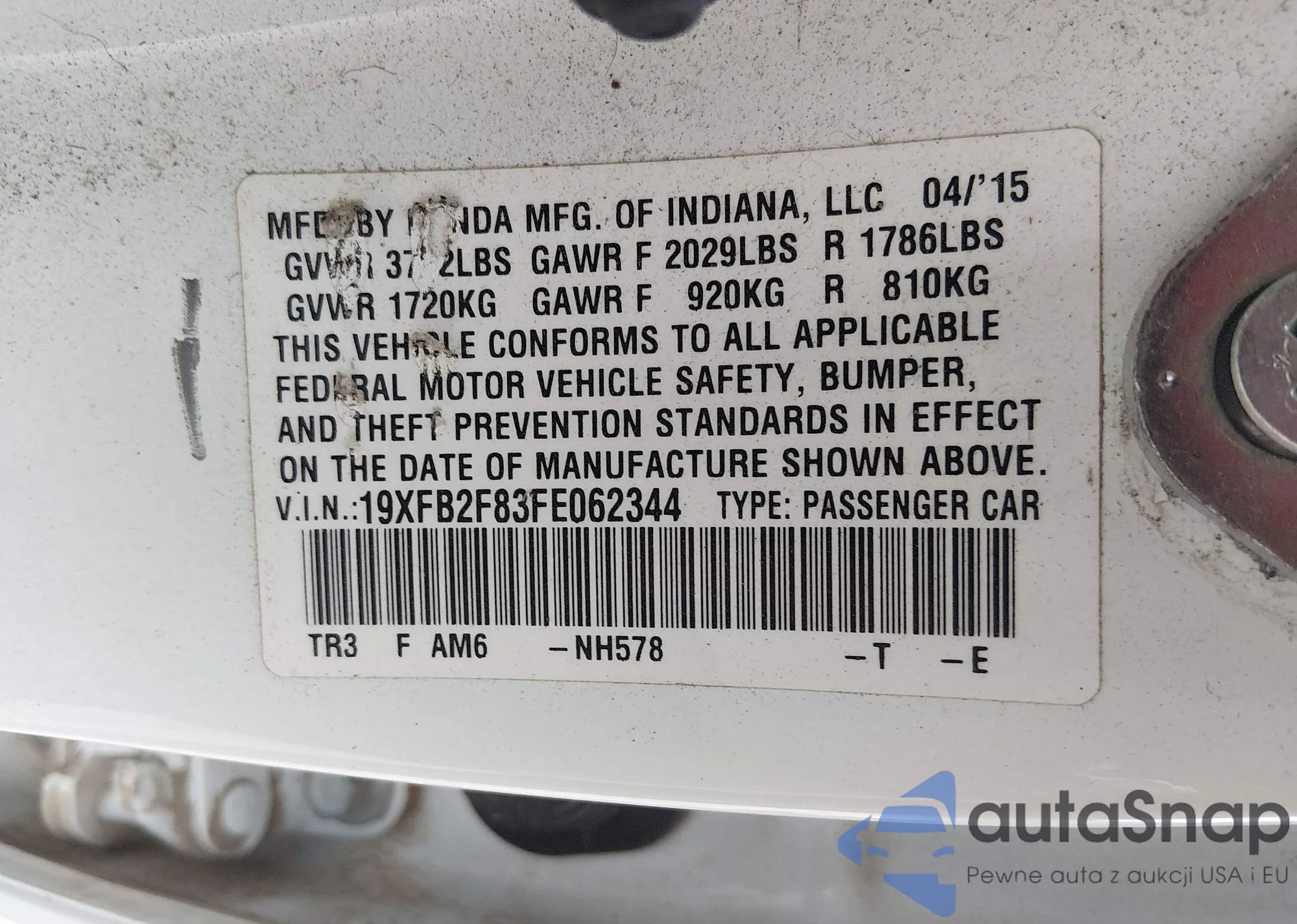 LOT: 43945870 VIN: 19XFB2F83FE062344