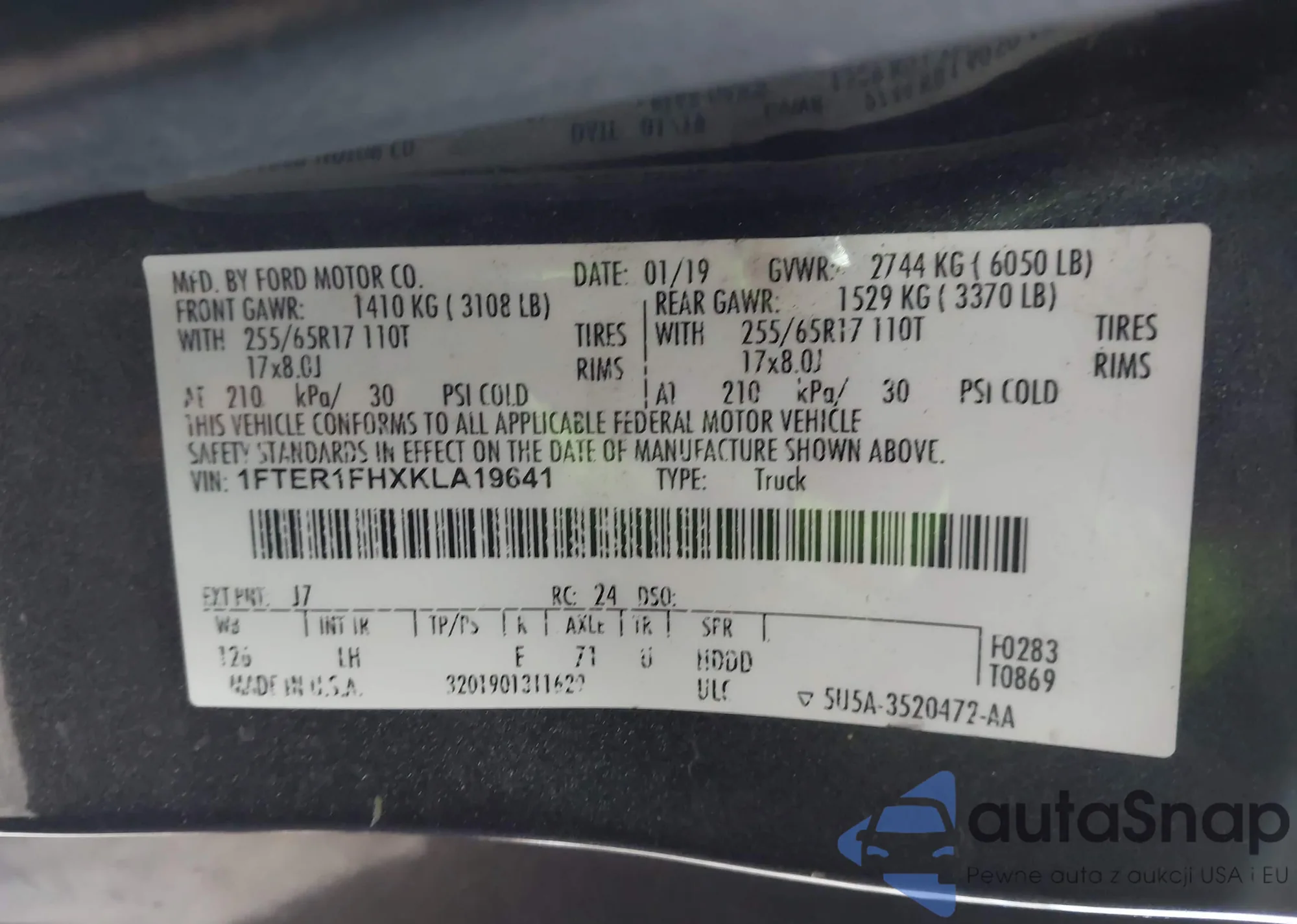 LOT: 43687628 VIN: 1FTEW1EF2HKC69995