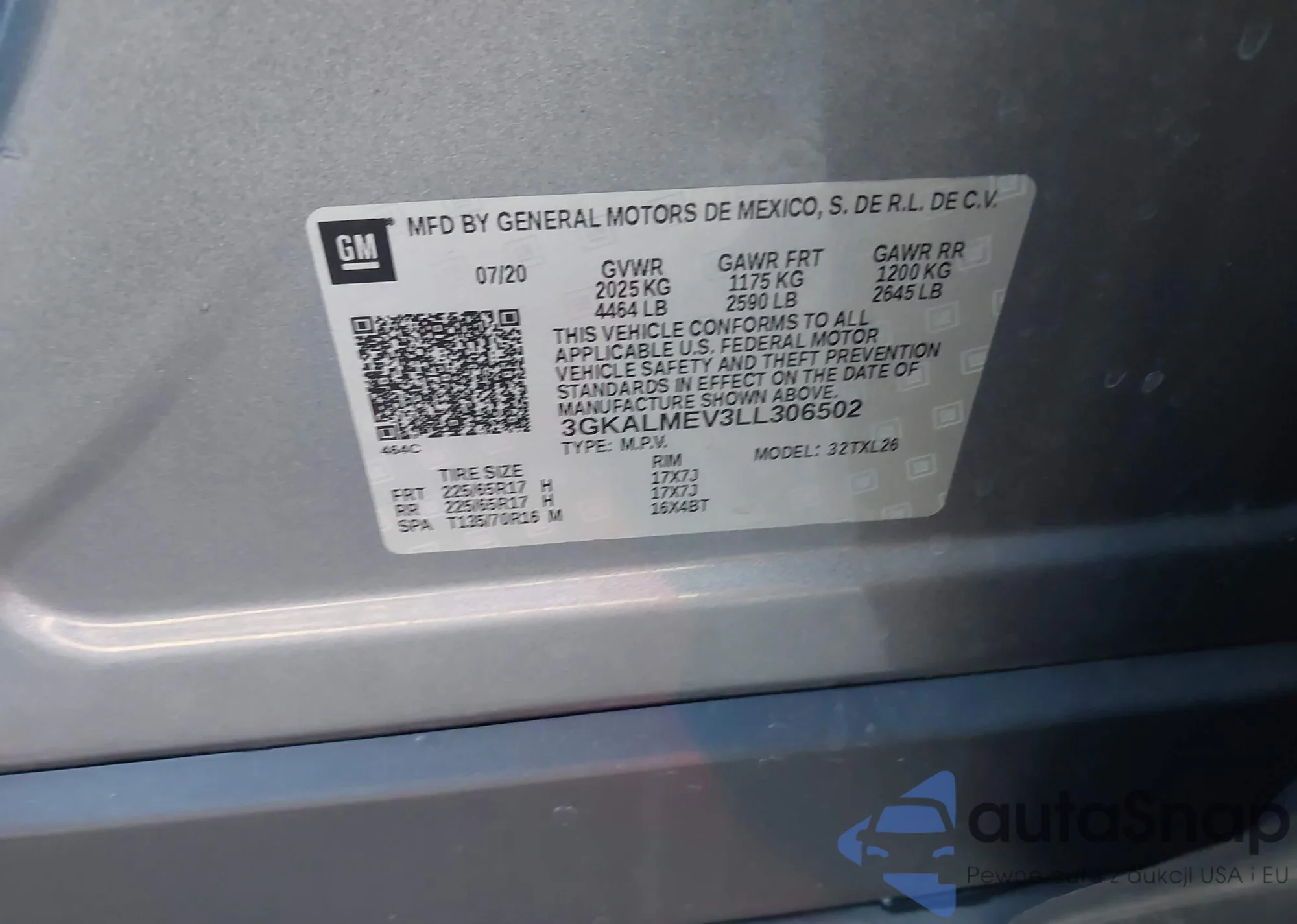 LOT: 43894305 VIN: 3GKALMEV3LL306502
