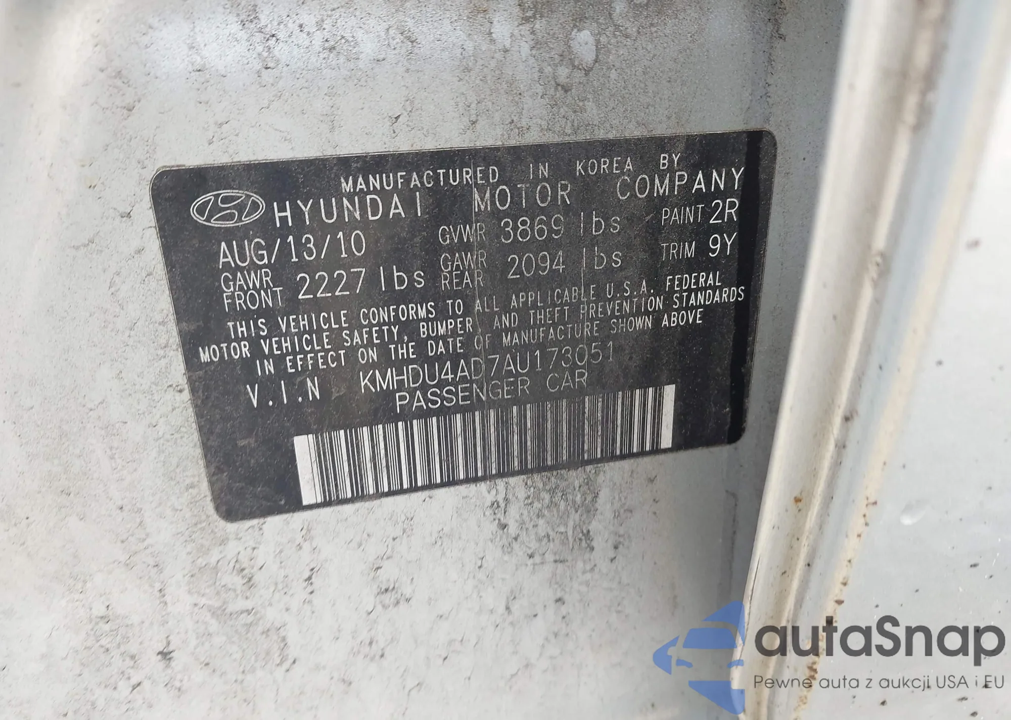 • VIN 1HGCP2F30BA094370