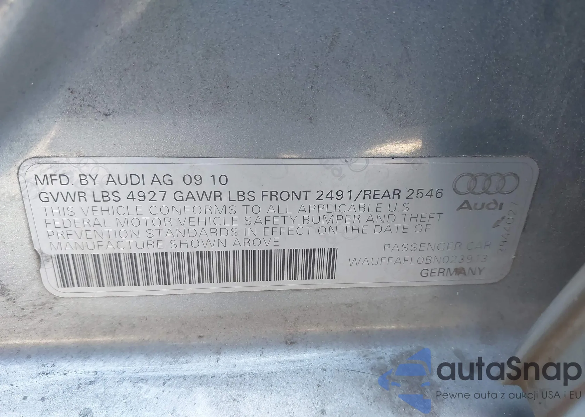 • VIN WAUFFAFL0BN023913