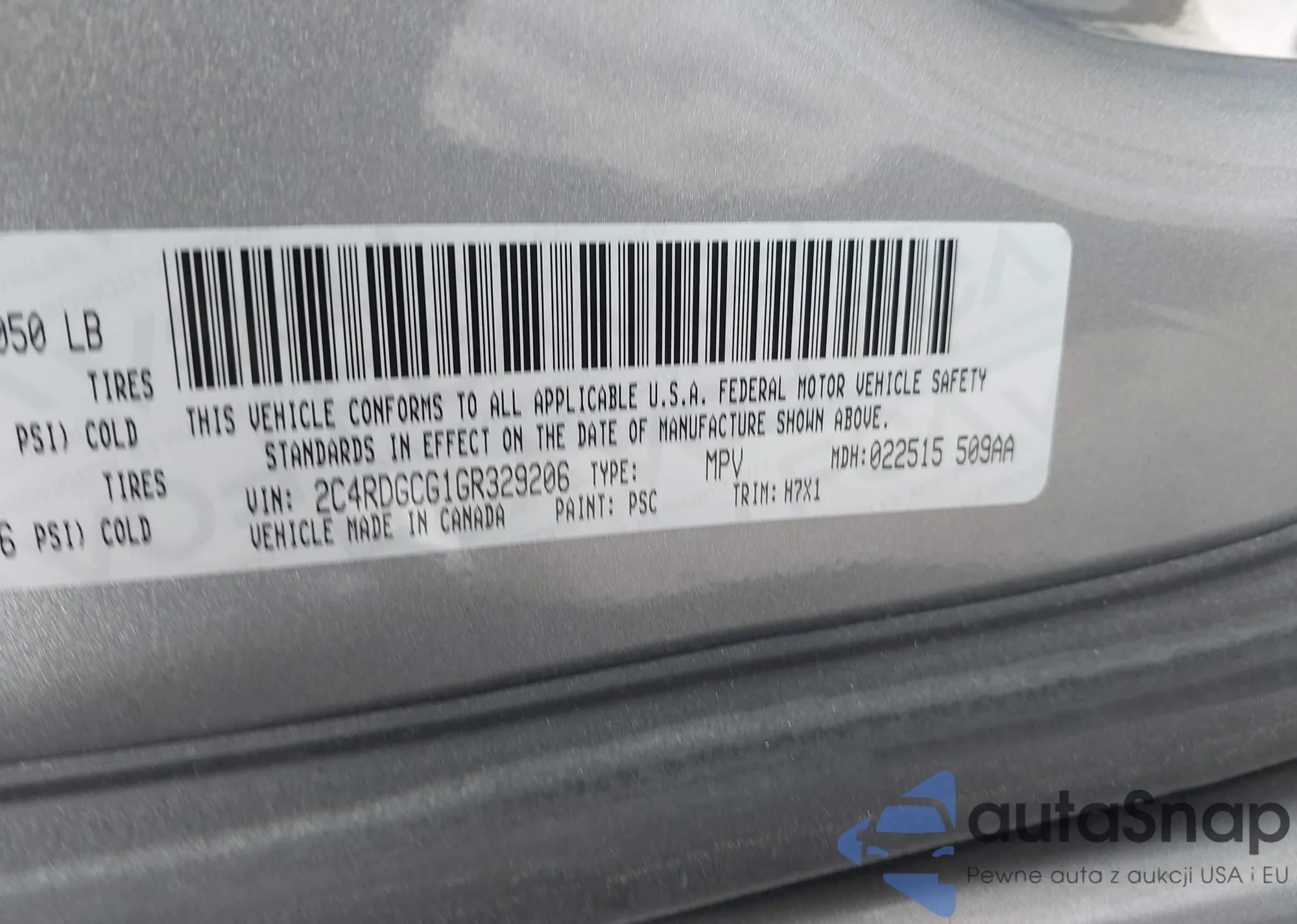 • VIN 2C4RDGCG1GR329206
