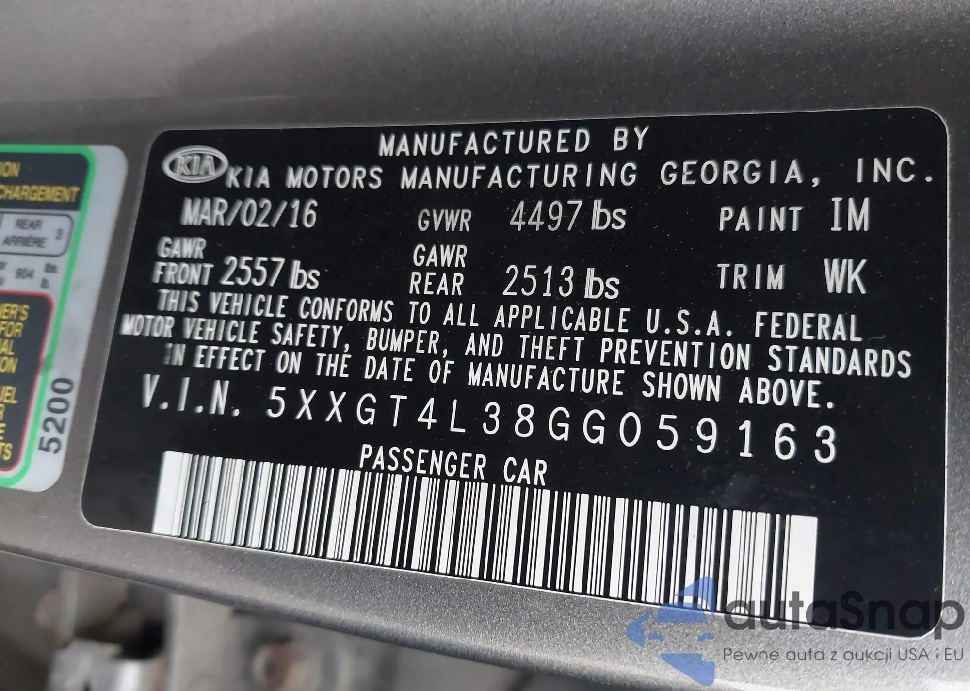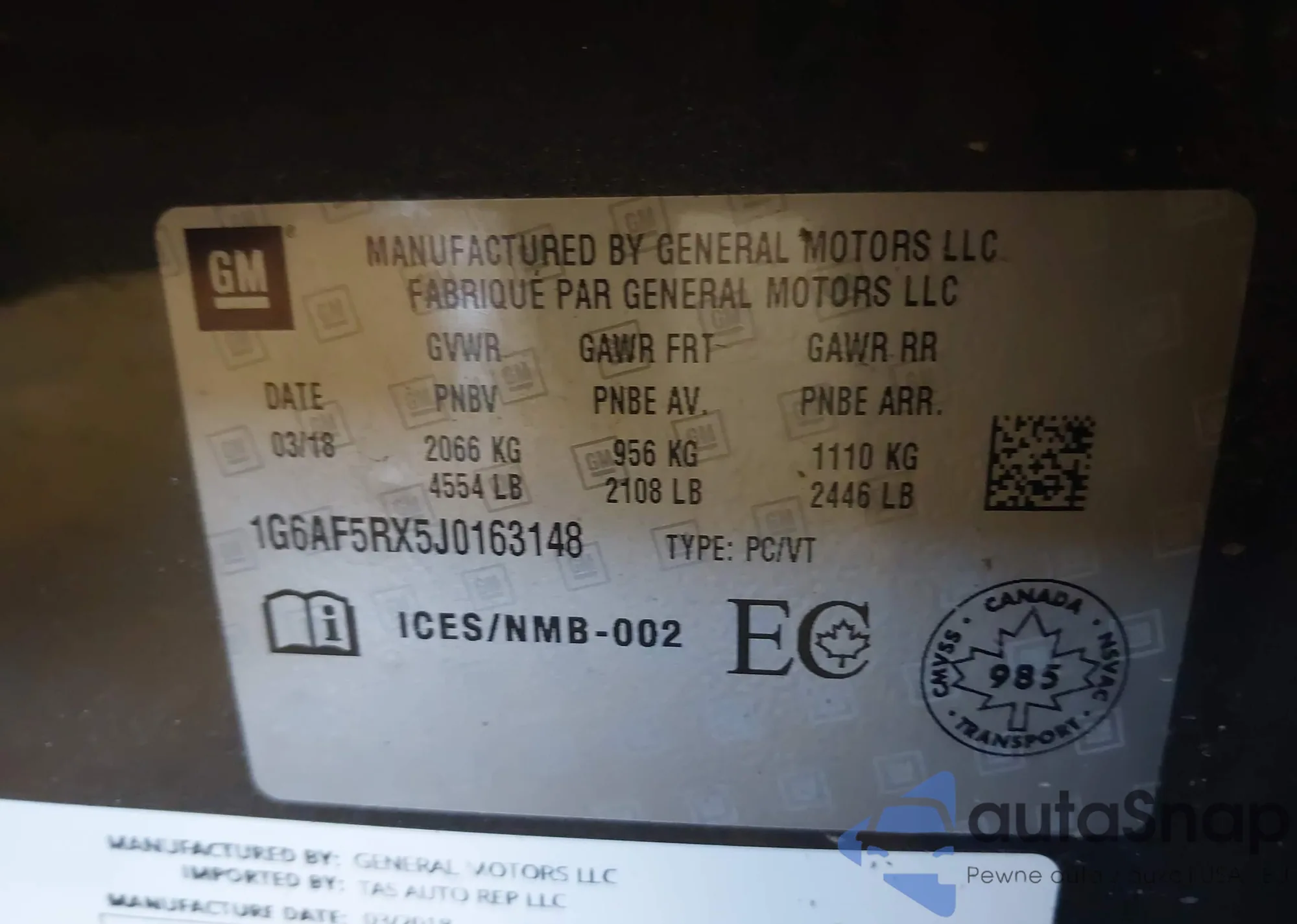 • VIN 1G6AF5RX5J0163148