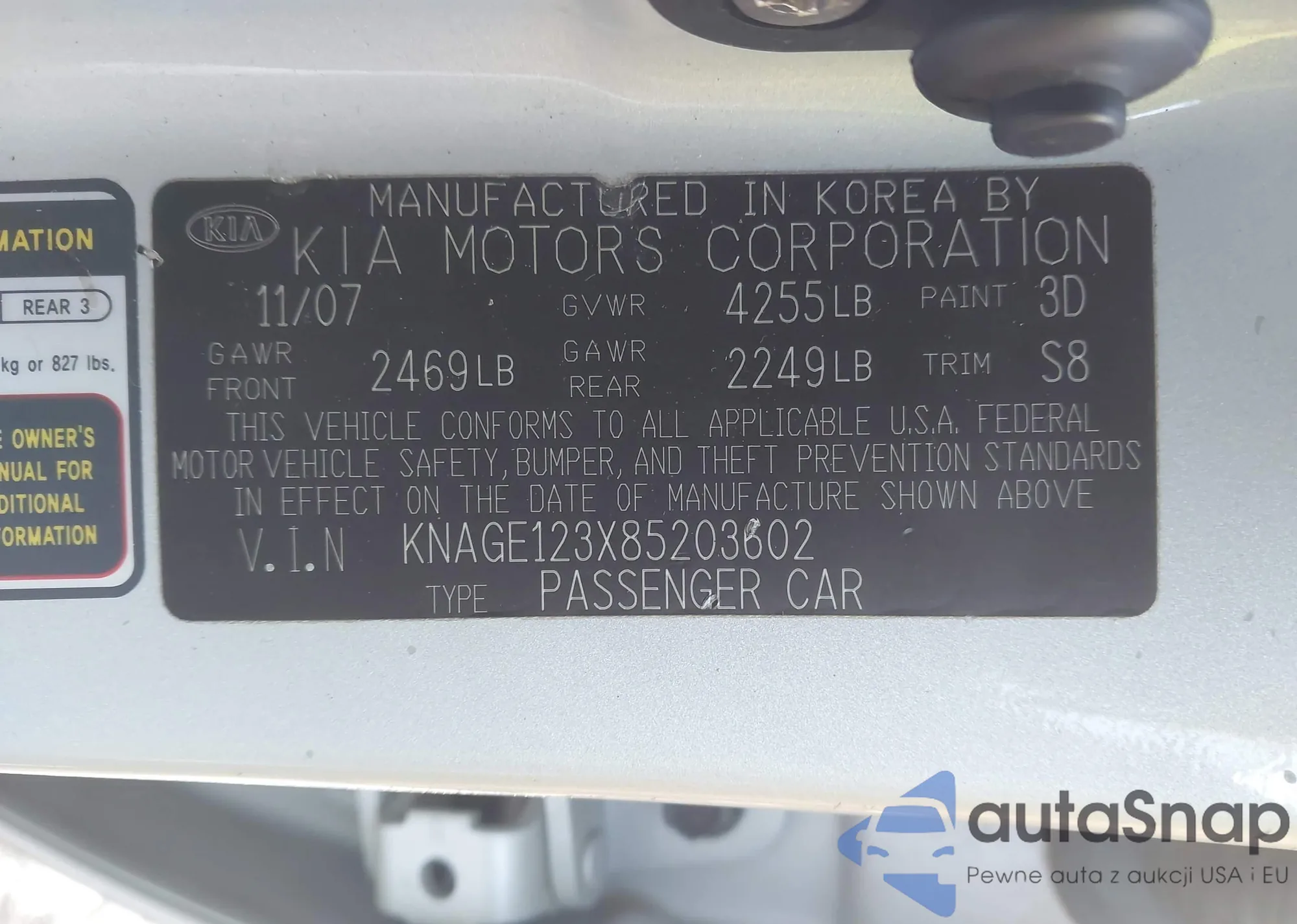 LOT: 43842546 VIN: KNAGE123X85203602