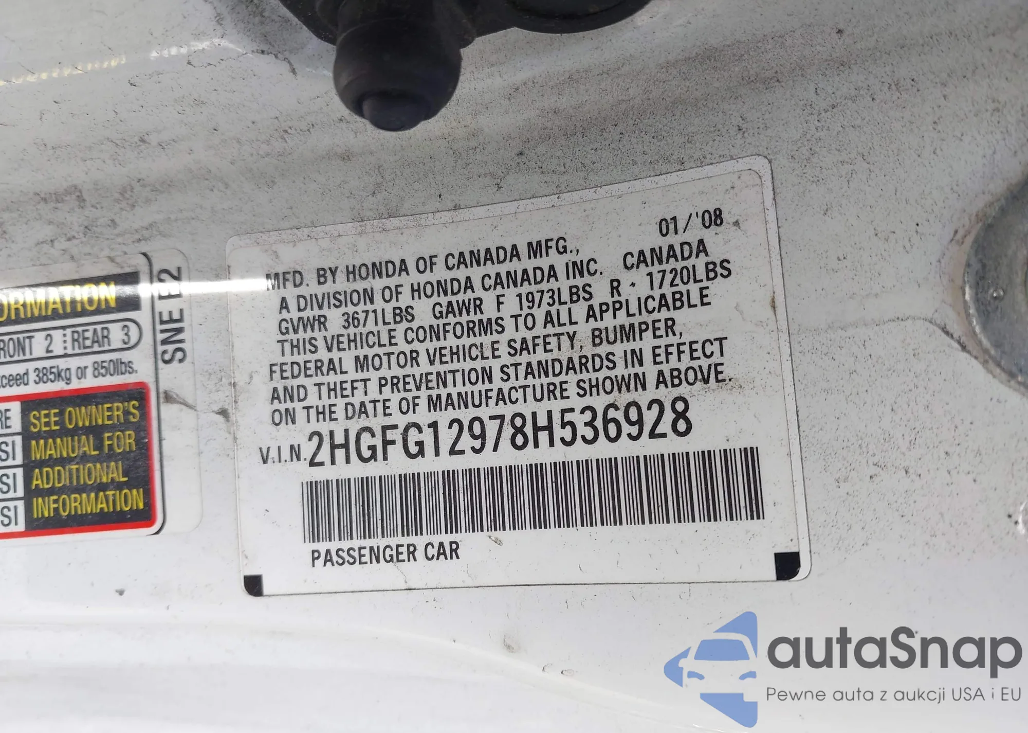 • VIN 2HGFG12978H536928