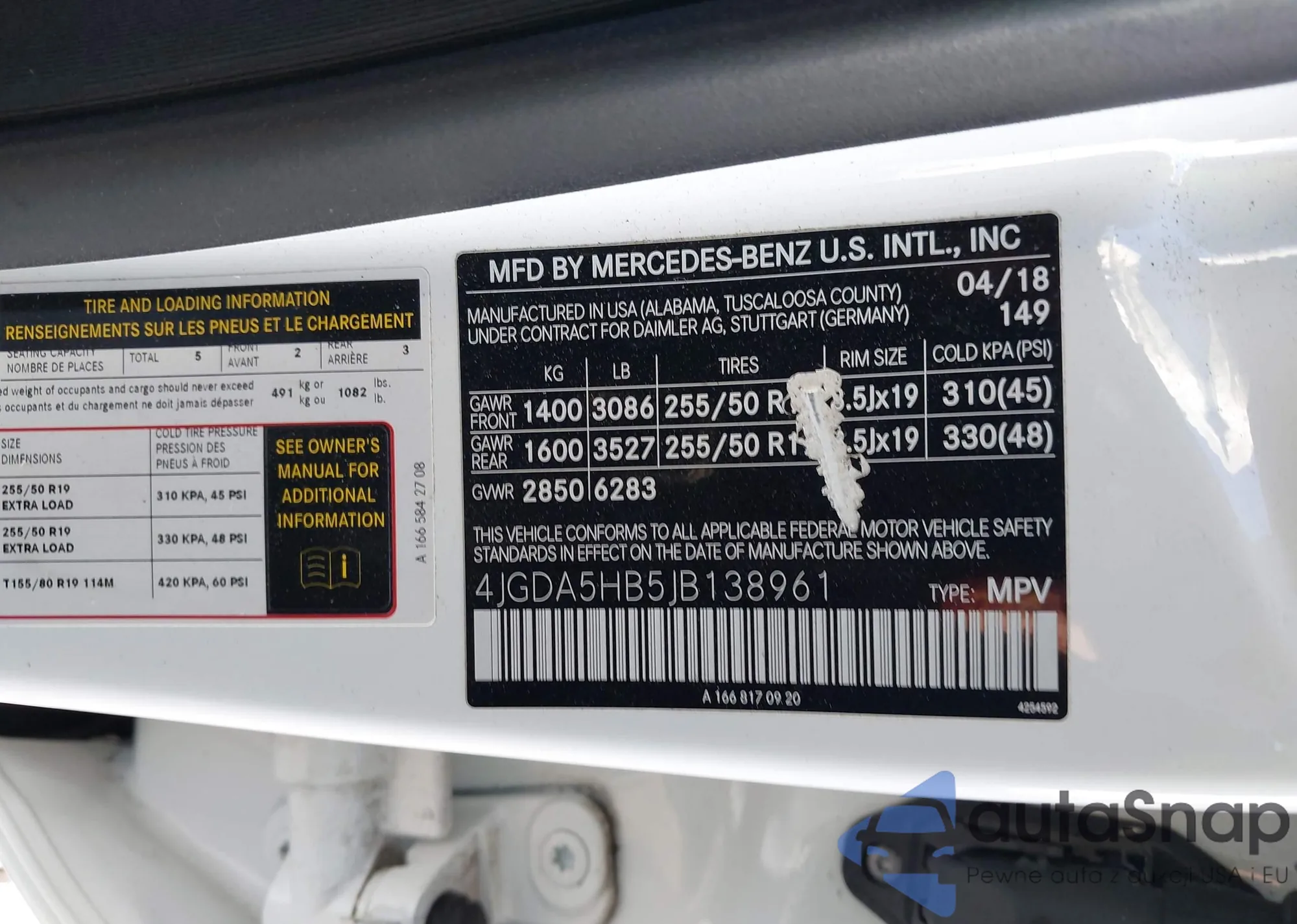 • VIN 4JGDA5HB5JB138961