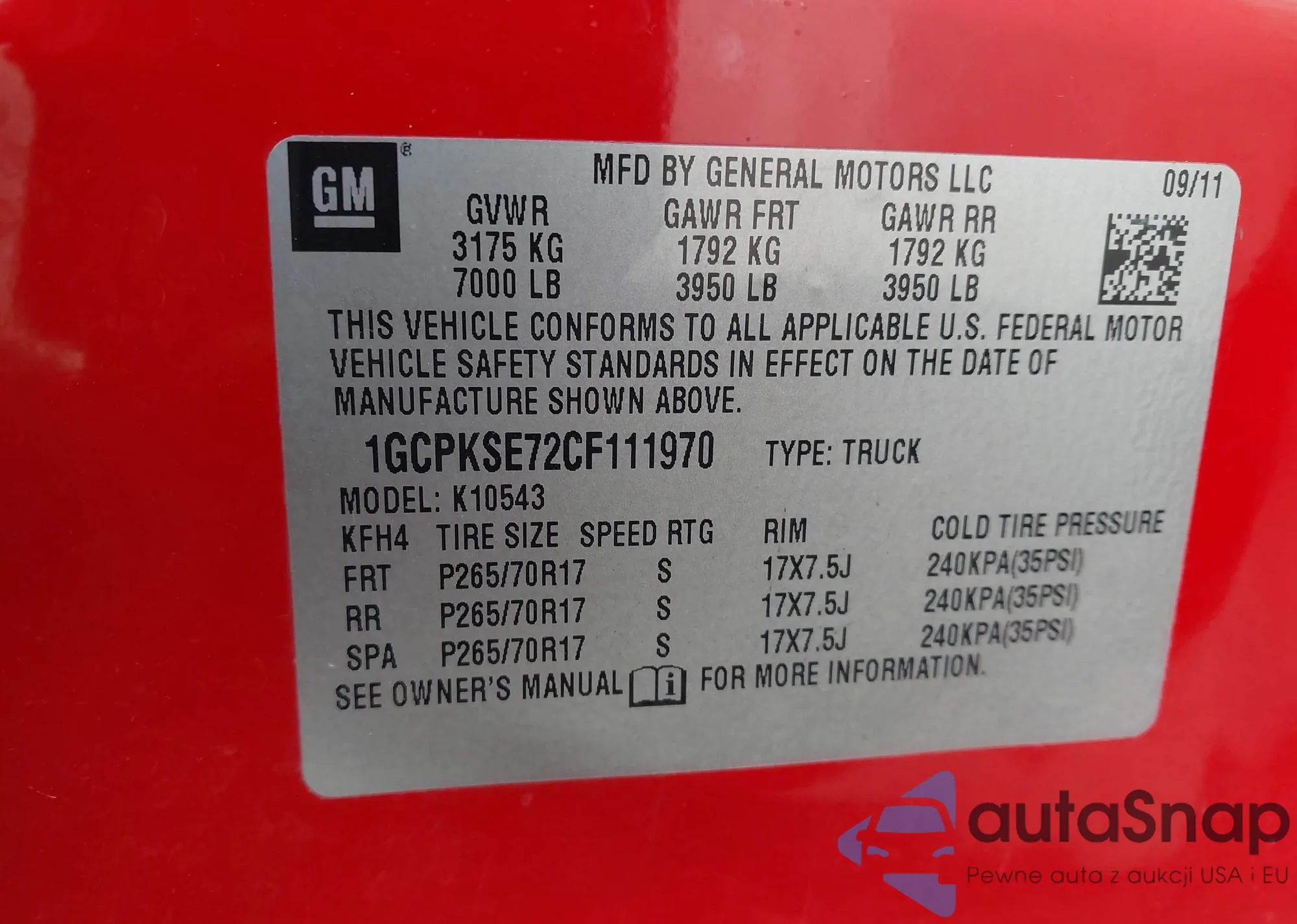 • VIN 1GCCS14HX38152936
