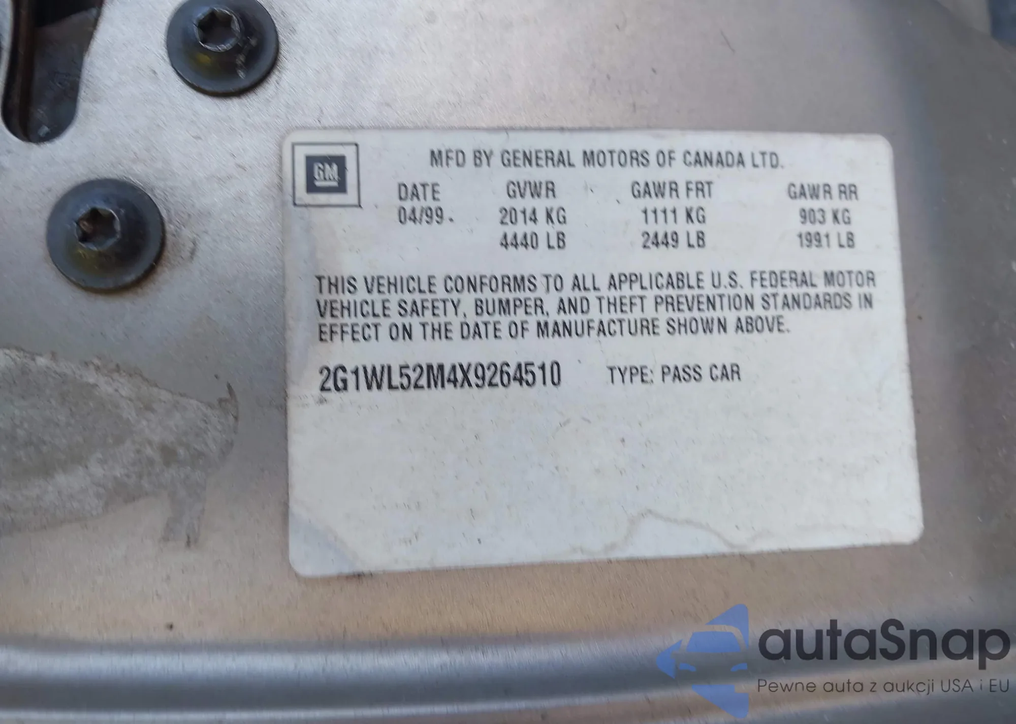 LOT: 44101287 VIN: 1GCCS14HX38152936