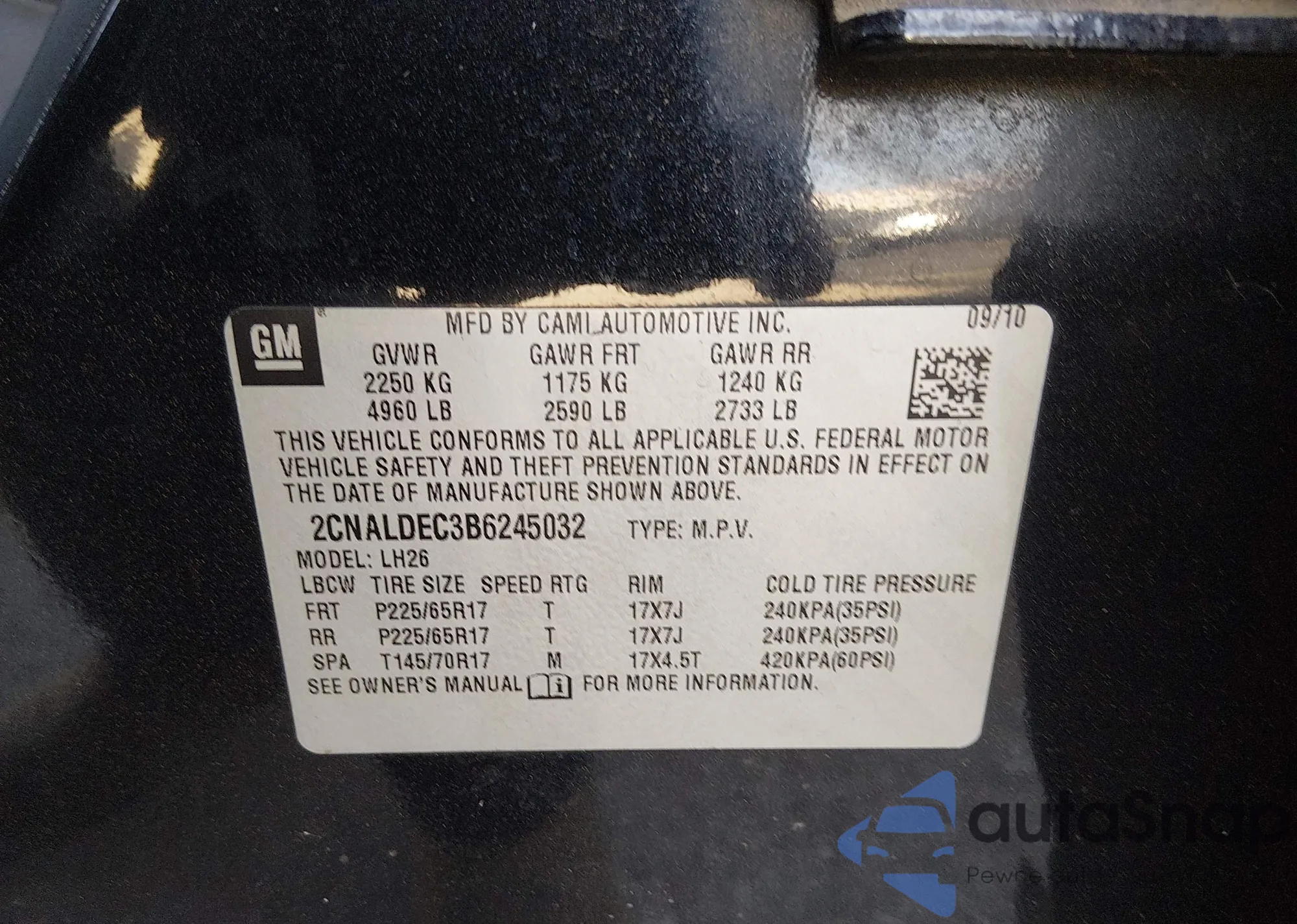 • VIN 2CNALDEC3B6245032