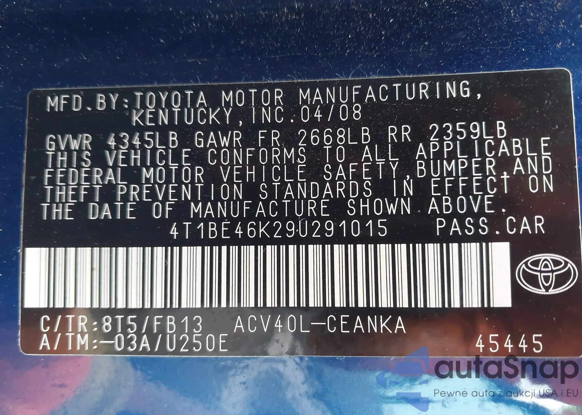 • VIN 4T1BE46K29U291015
