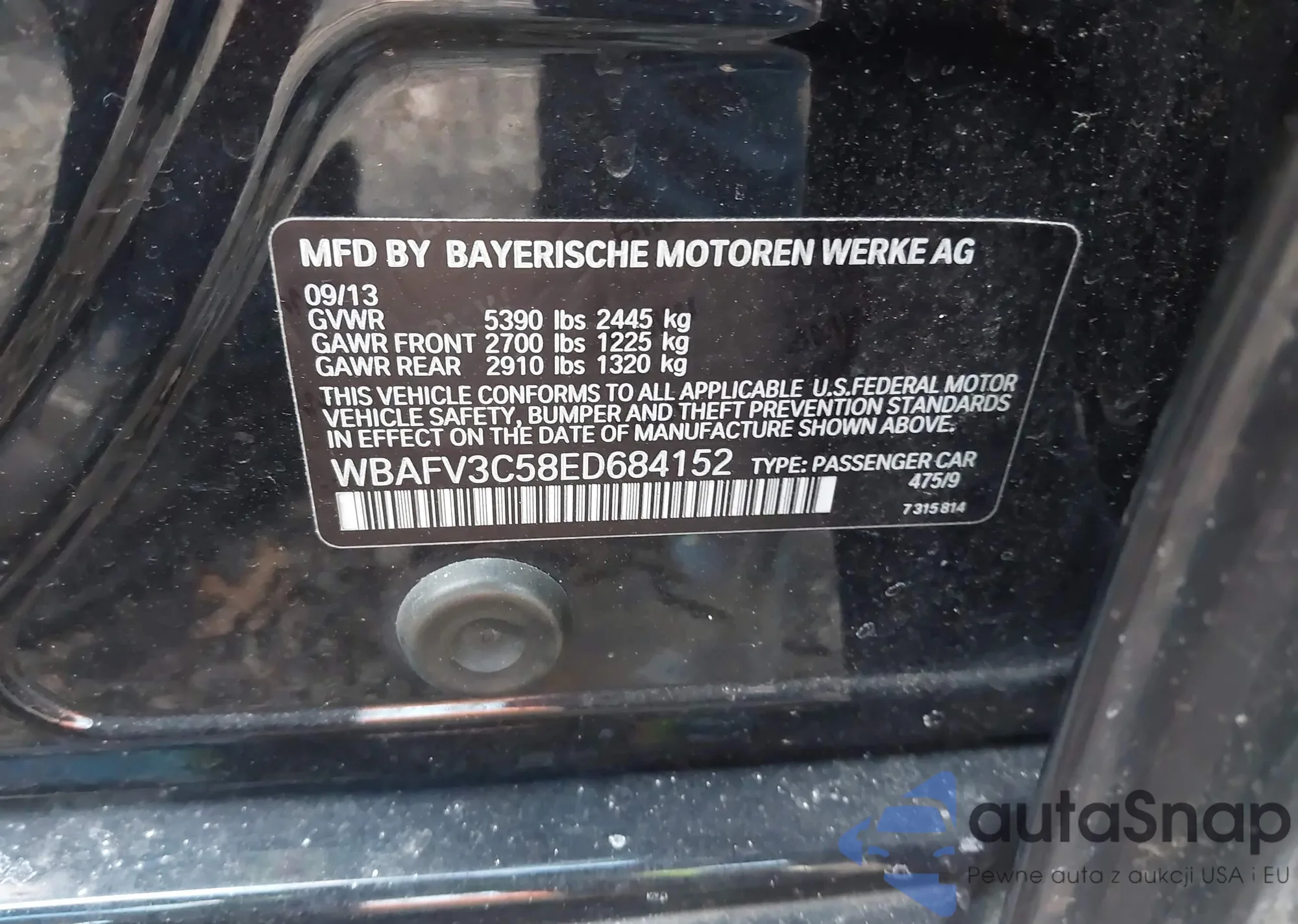 • VIN WBAFV3C58ED684152