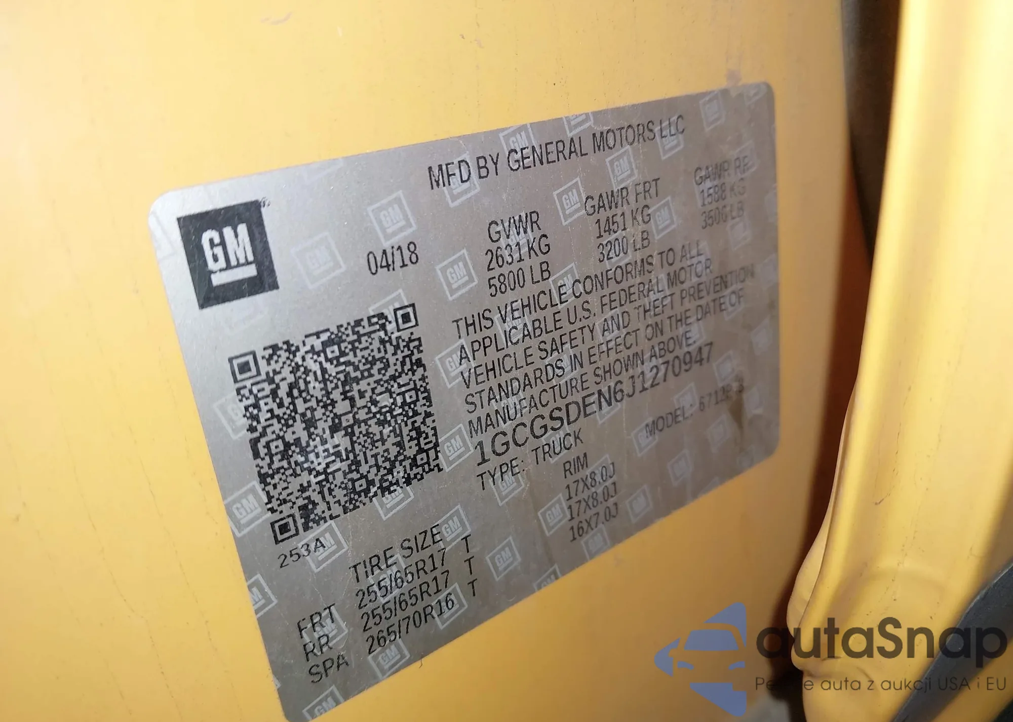 LOT: 44006318 VIN: 1GCGSDEN6J1270947