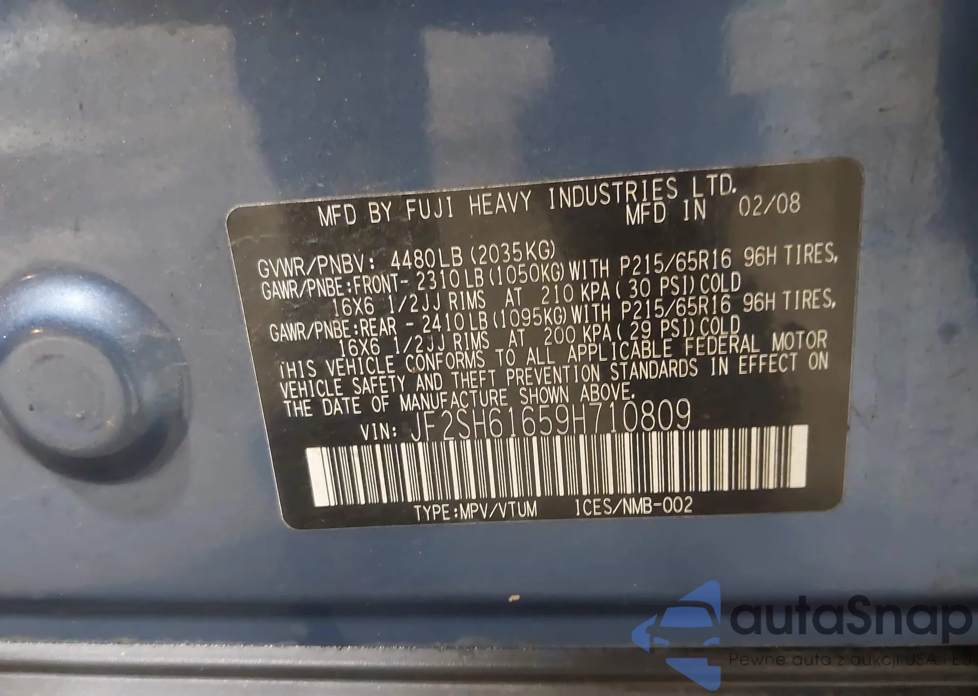 LOT: 44018037 VIN: JF2SH61659H710809