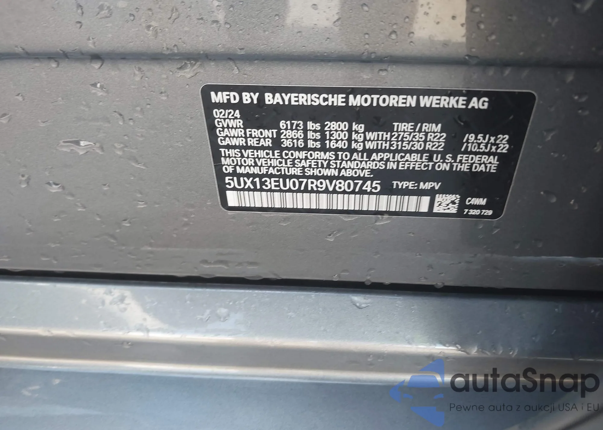 • VIN 5UX13EU07R9V80745