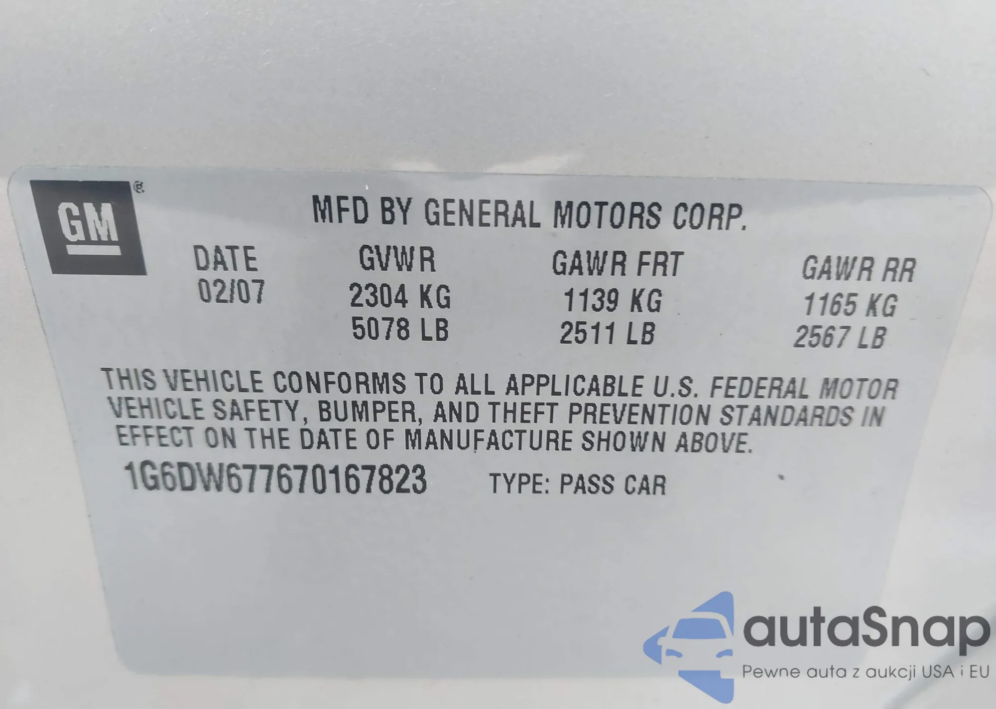 • VIN 1G6DW677670167823